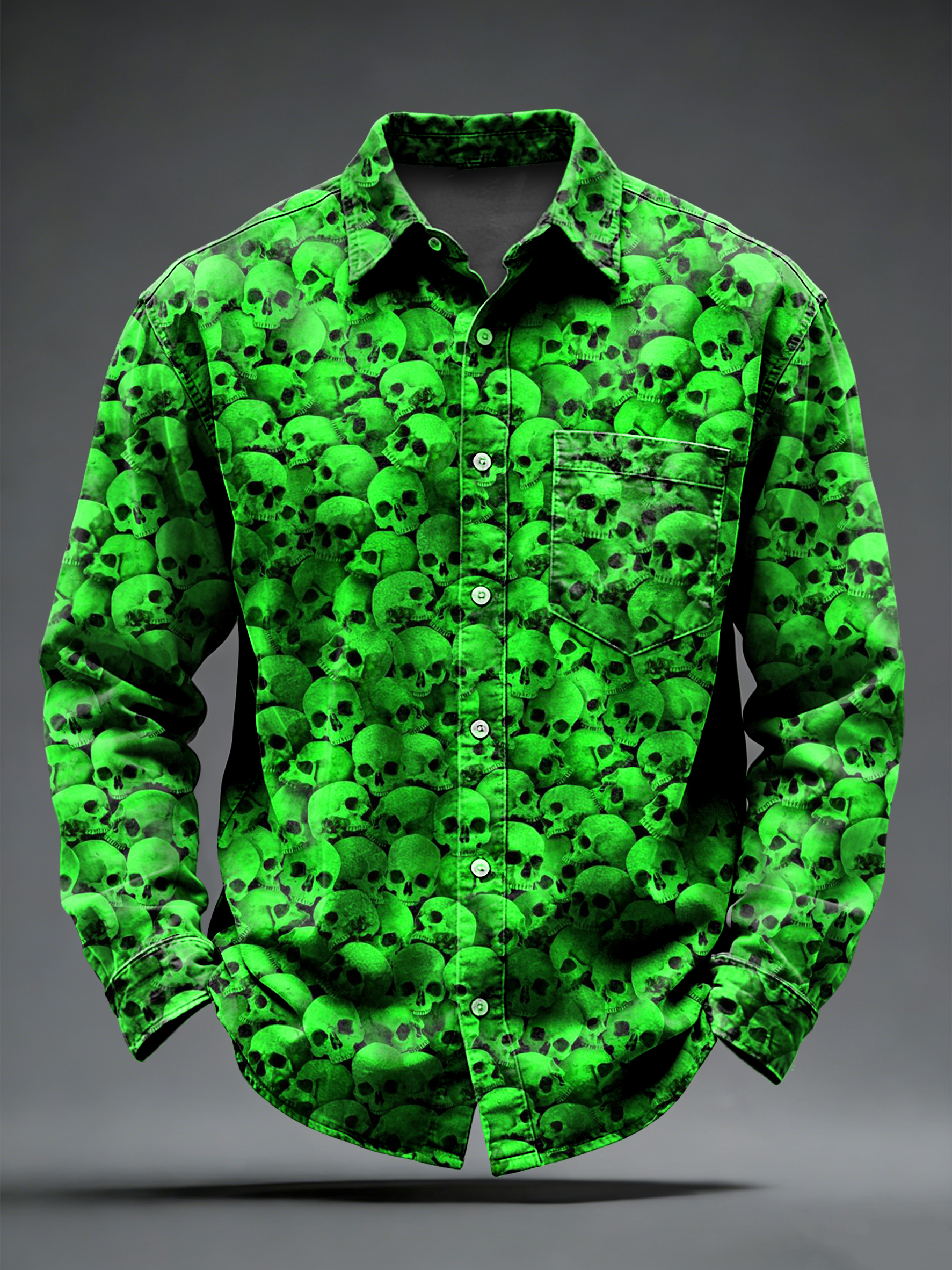 Men's Retro Punk Psychedelic Skull Printed Long Sleeved Pocket Shirt