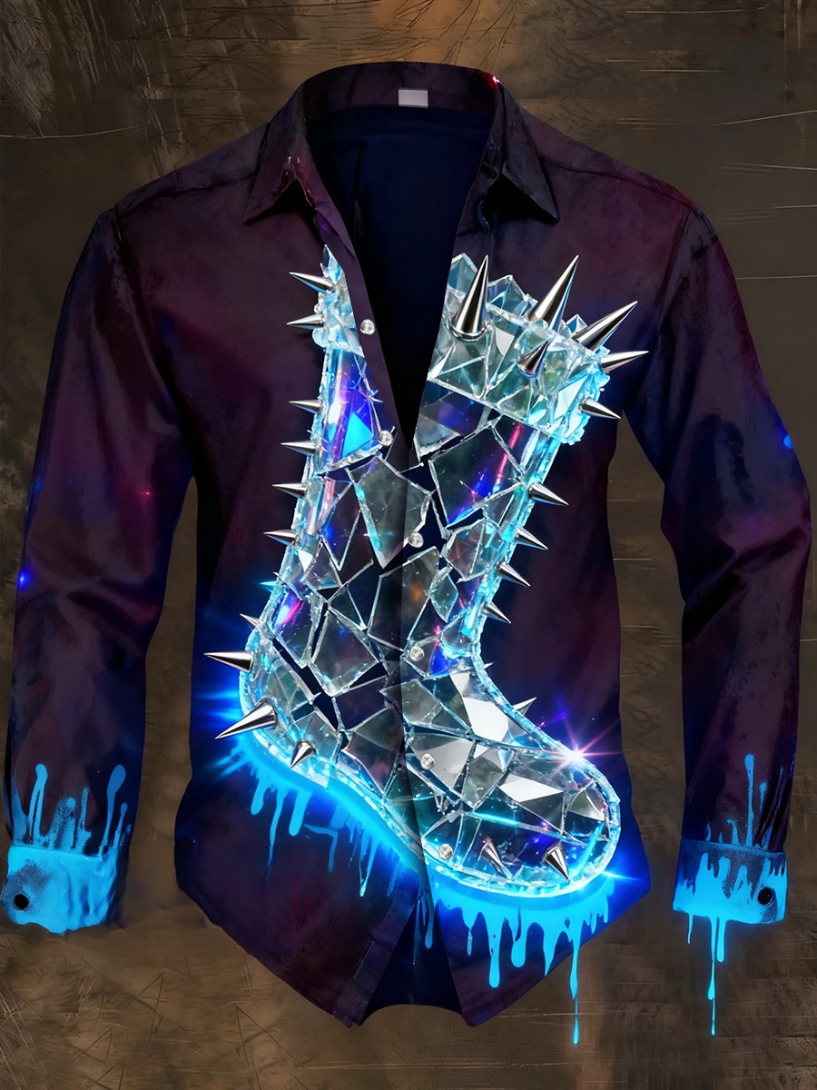Men's Retro Punk Ice Skates with Rivets Abstract Print Casual Long Sleeve Shirt
