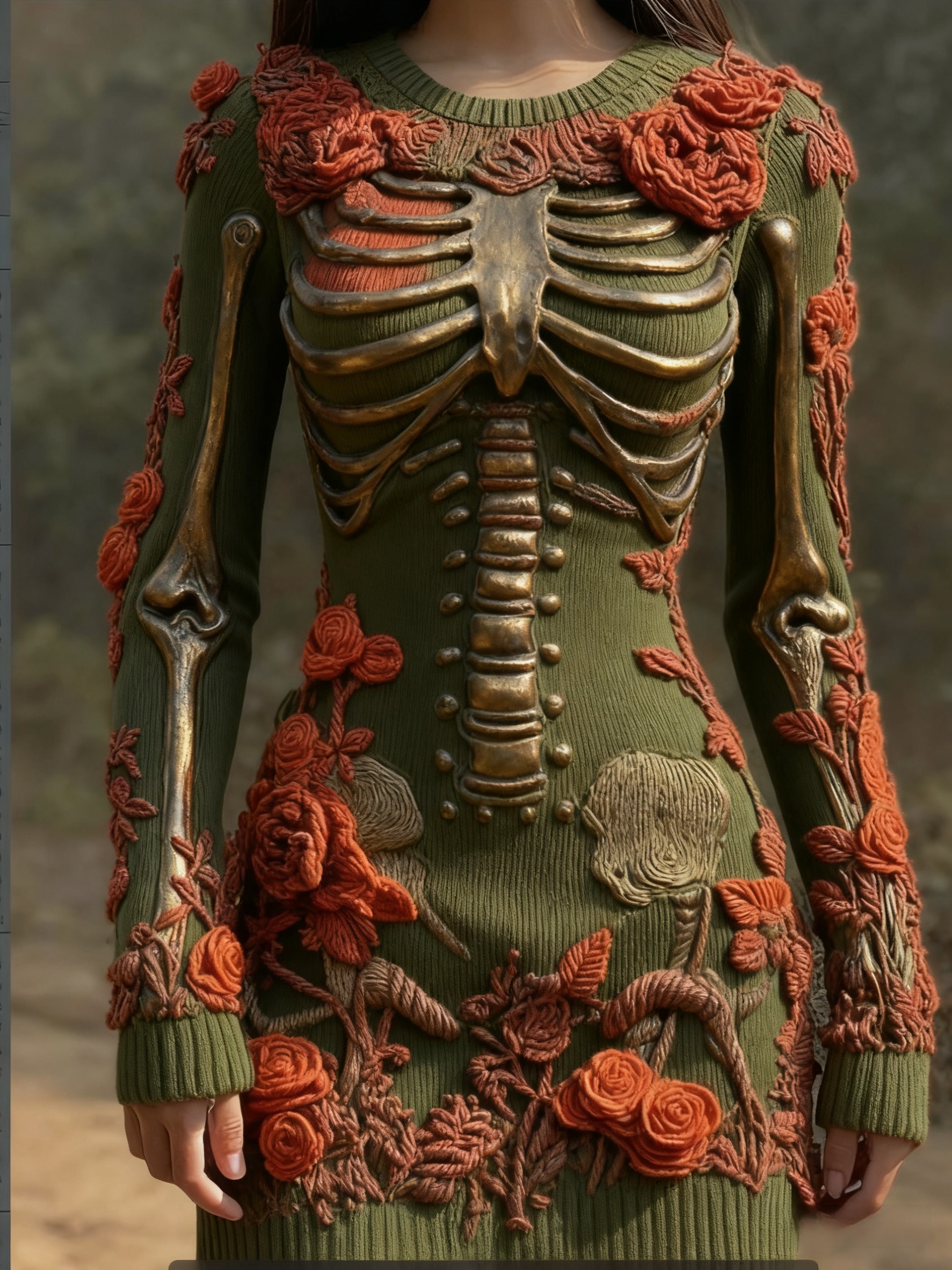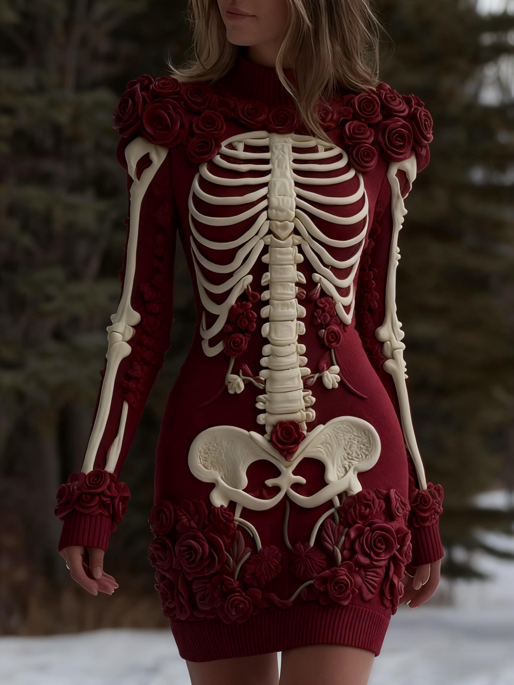Women's Retro Halloween Skull Floral Knitted Dress