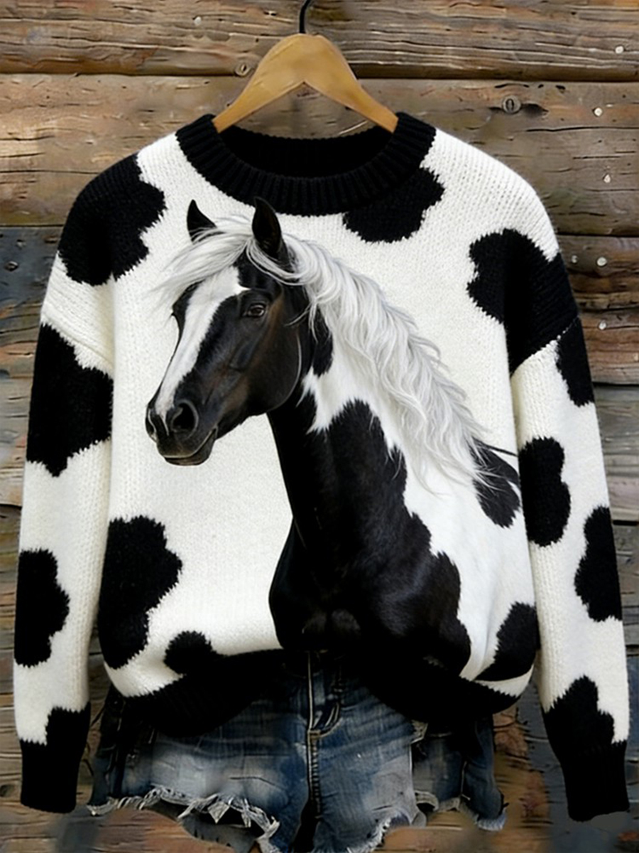 Women's Horse Design crew neck sweater