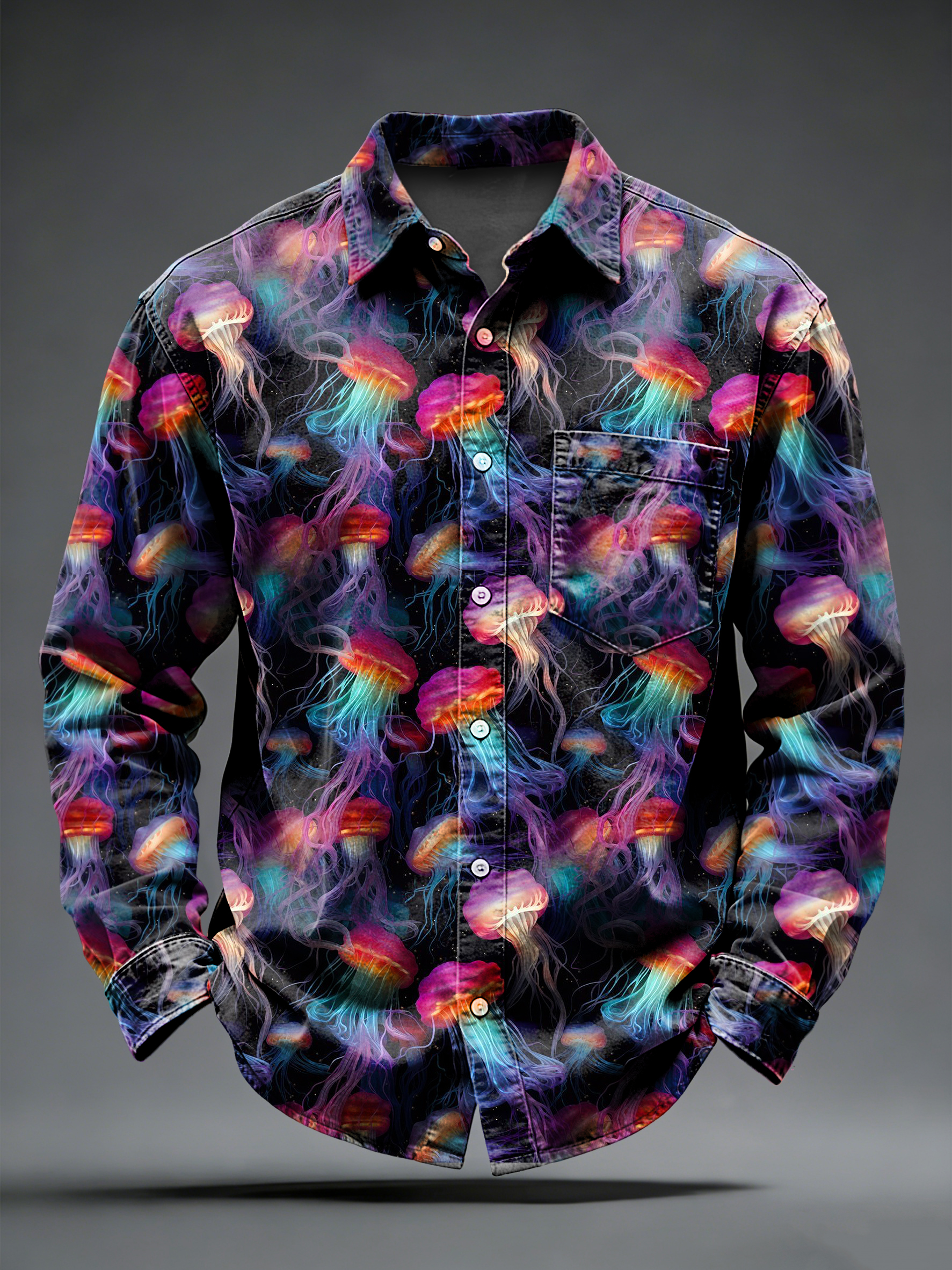 Men's Retro Psychedelic Punk Jellyfish Printed Long Sleeved Pocket Shirt