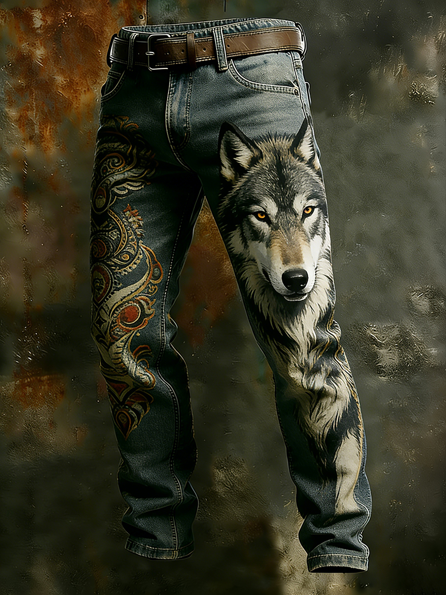Men's Vintage Animal Print Art Business Casual Work Pants