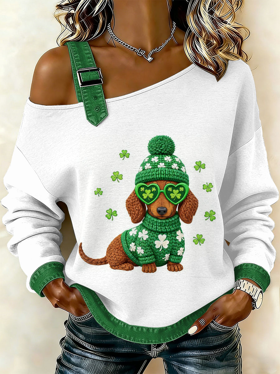 Women's Vintage St. Patrick's Day Print Casual Off-Shoulder Sweatshirt