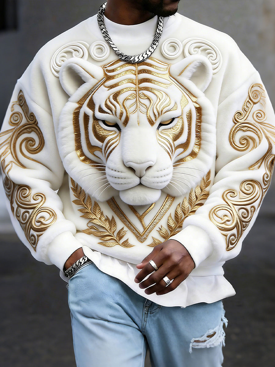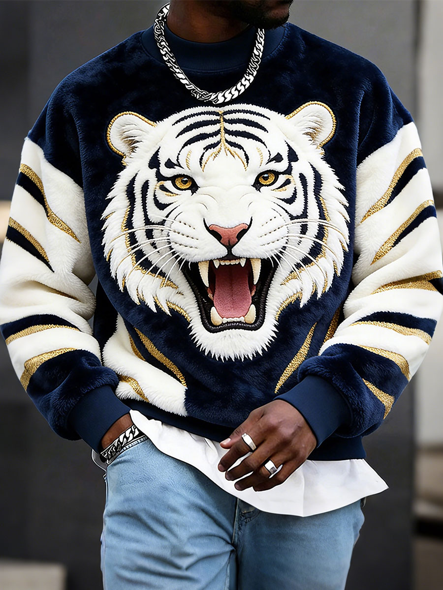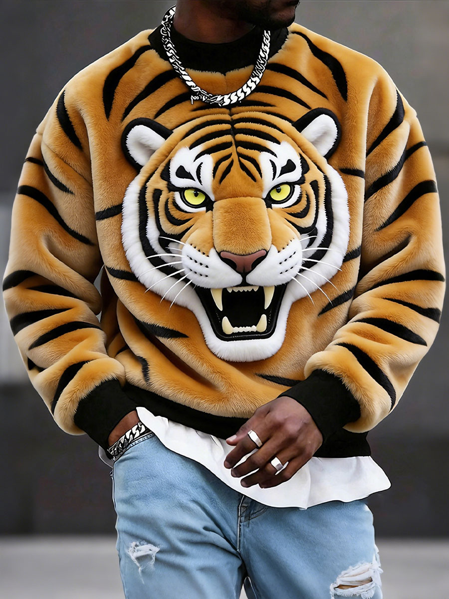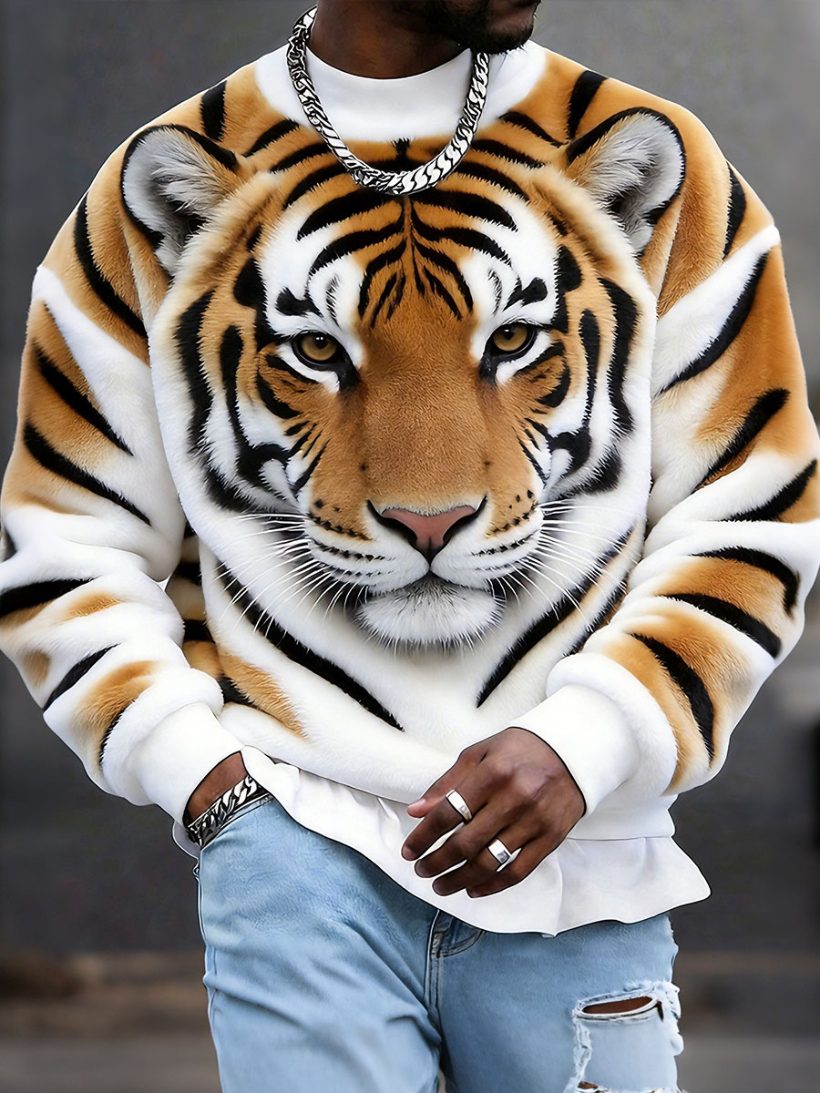 Men's Tiger Print Flannel Sweatshirts