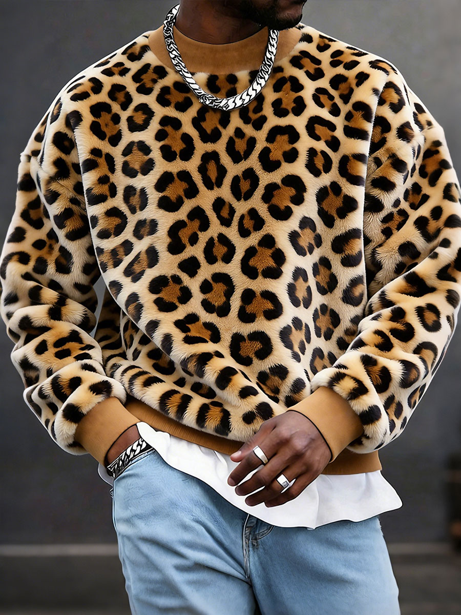 Men's Leopard Print Flannel Sweatshirts