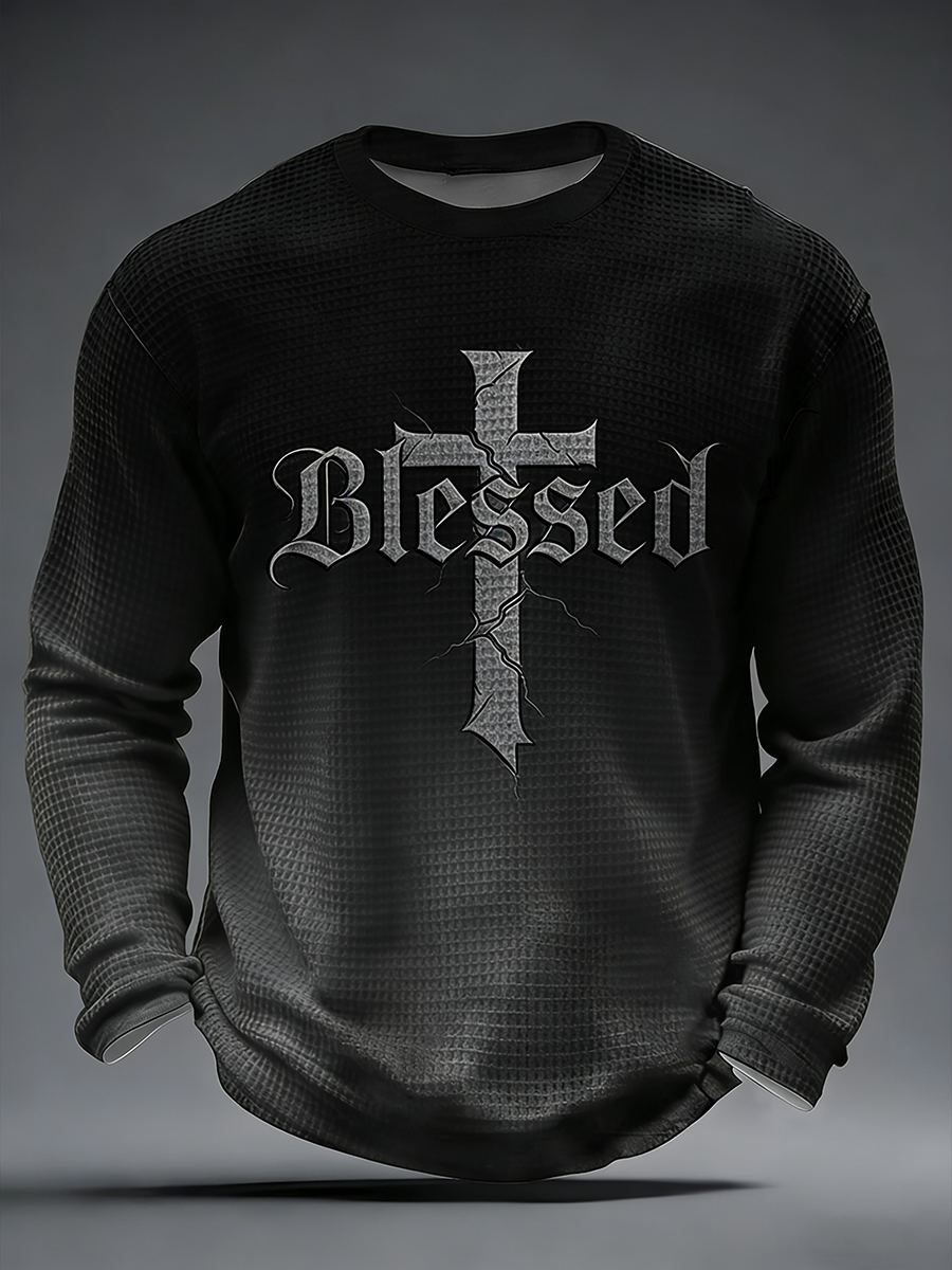 Men's Christian Blessed Cross Waffle Long Sleeve T-Shirt