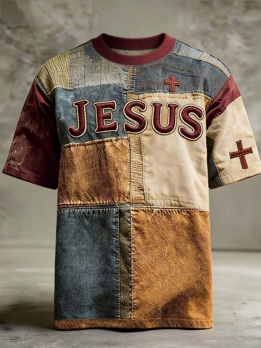Men's Christian Blessed Cross Paisley Pattern Color Block Print Casual Hoodie