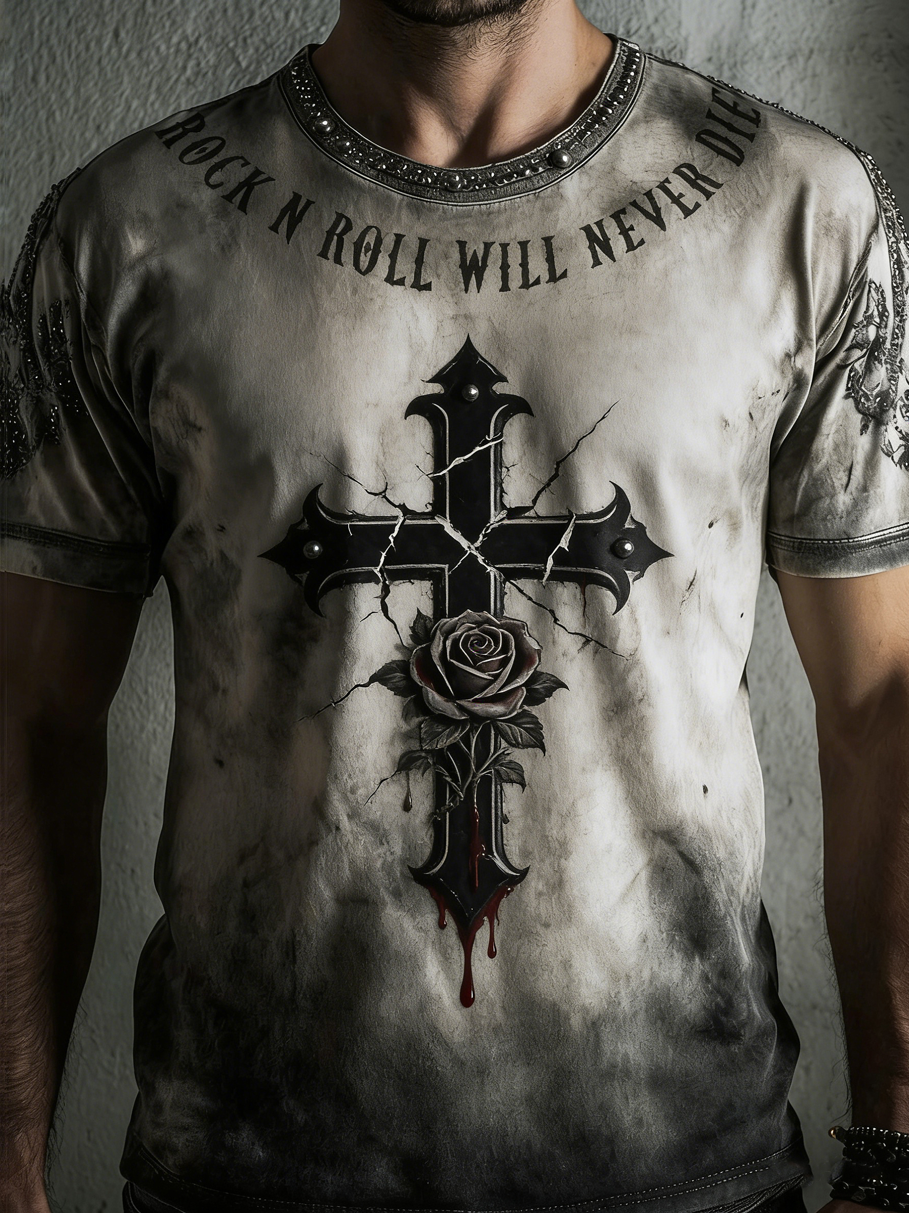 Men's Dark Gothic Printed Vintage Fashion Loose Short Sleeve T-Shirt
