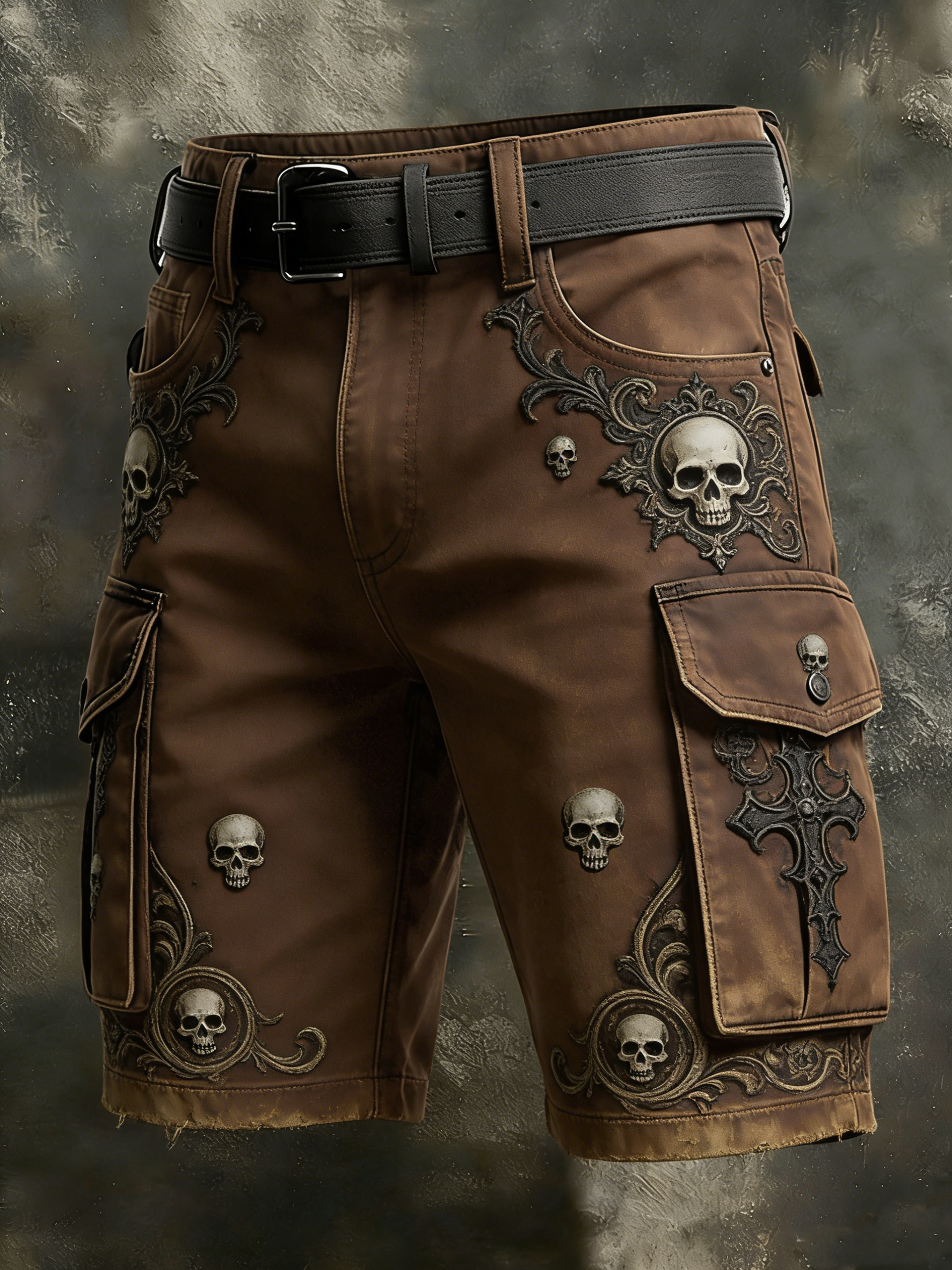 Men's Retro Vacation Business Gothic Skull Art Print Casual Shorts