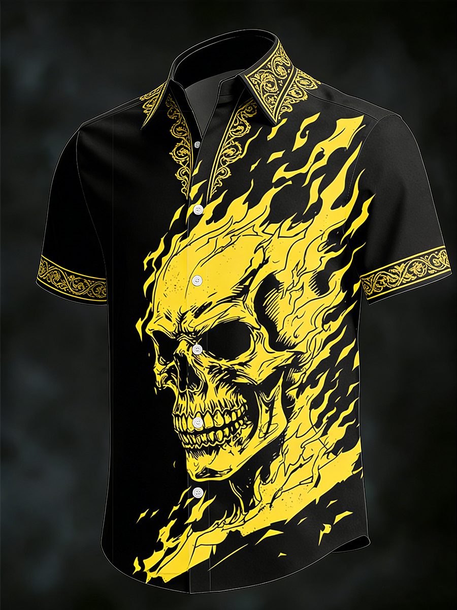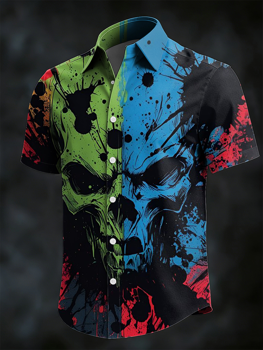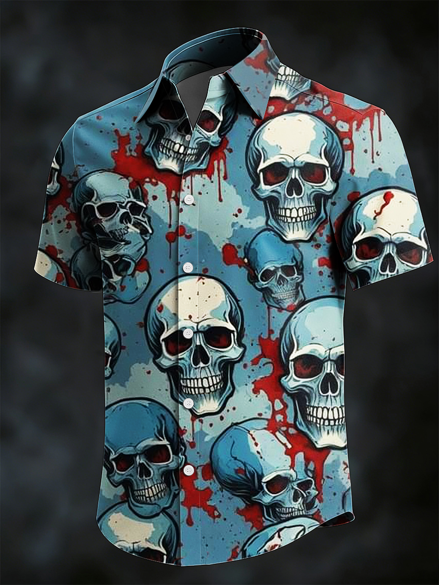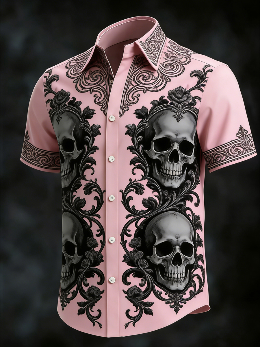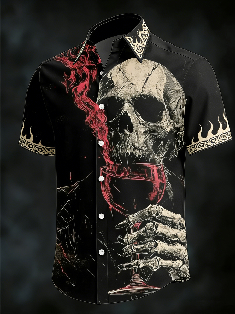 Men's Gothic Skull Print Casual Short Sleeved Shirt