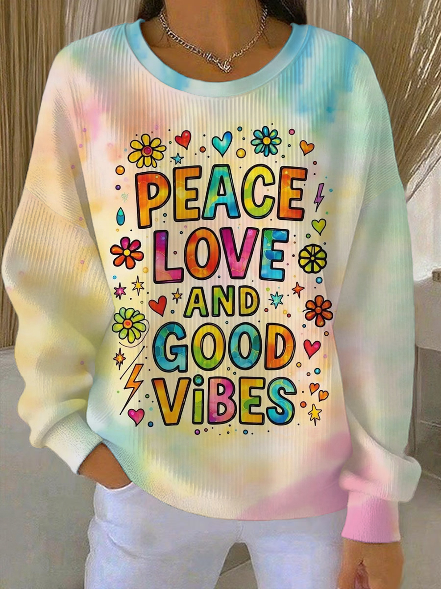 Women's Hippie Peace Love And Good Vibes Print Casual Sweatshirt
