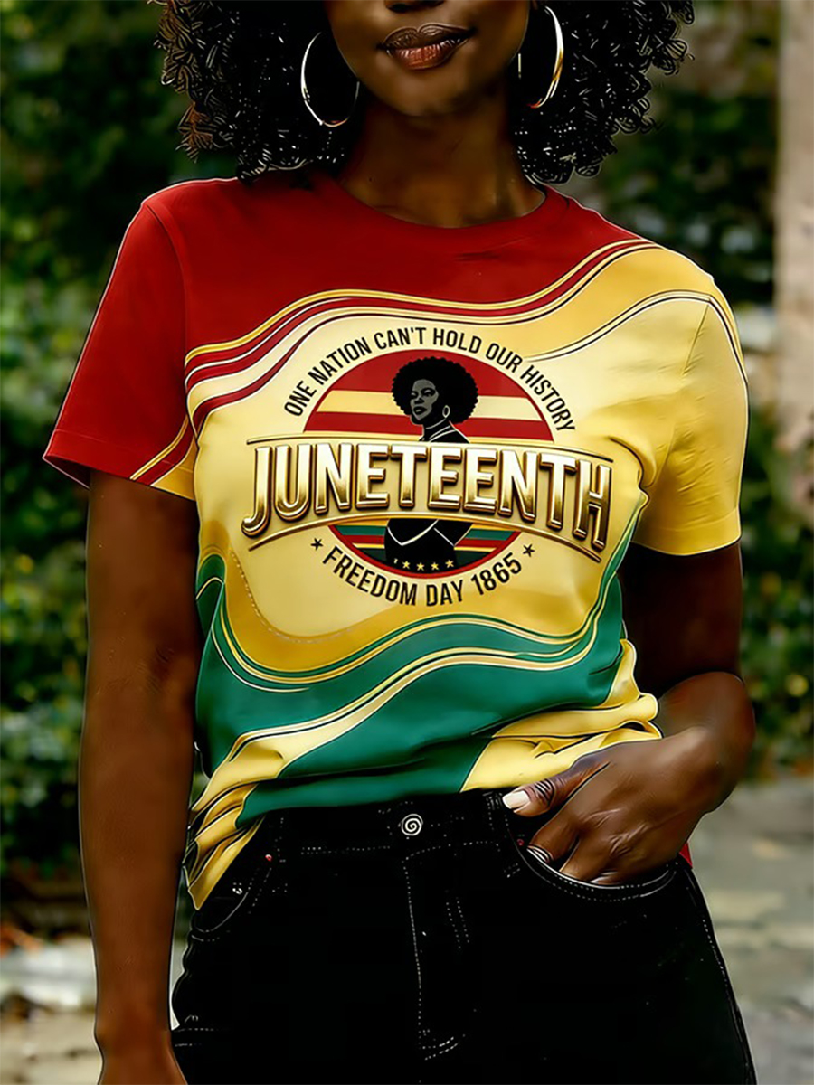 Women's Juneteenth Freedom Patchwork Casual T-Shirt