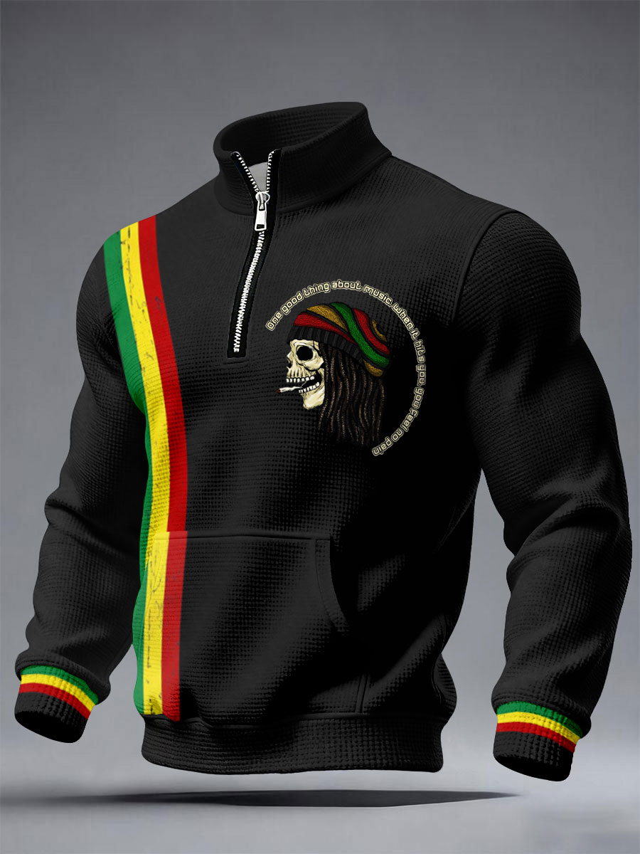 Men's Reggae Music Inspired Print Waffle Long-Sleeve Top