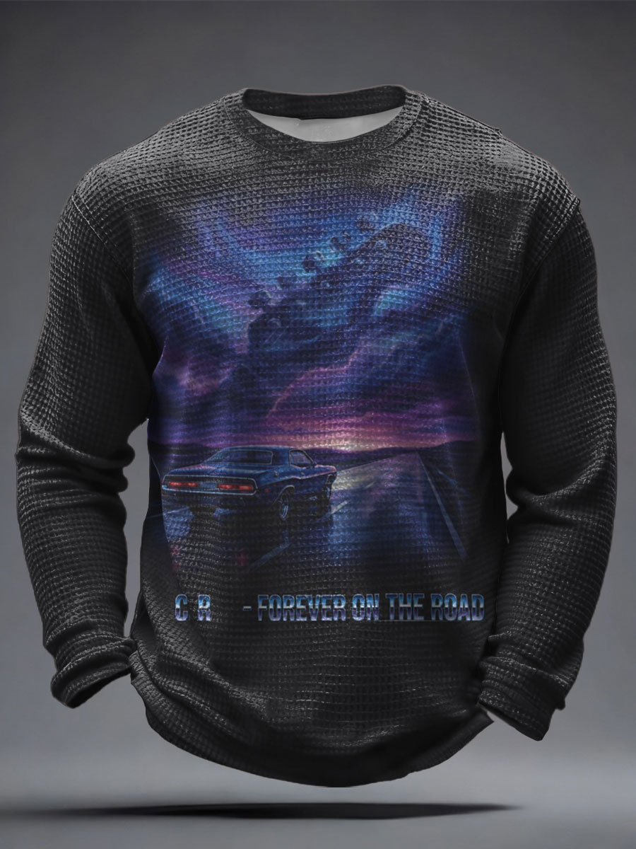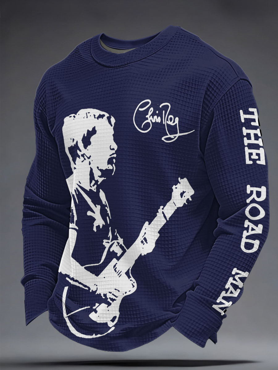 Men's The Road Man Music Lover Printed Waffle Sweatshirt