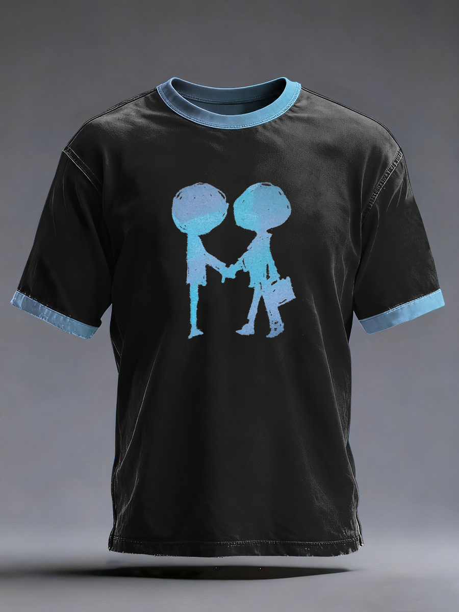 Vintage Punk Trippy Patterns Vibrant Guitar Lines Abstract Print Casual Cotton Short Sleeve Shirt