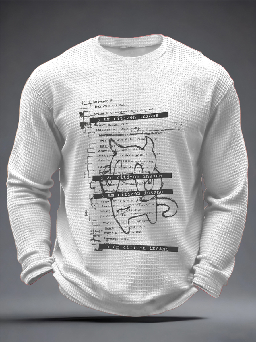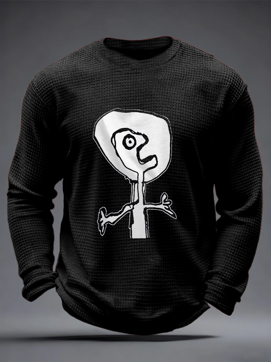 Men's Moon Music Rock Print Waffle Long Sleeve T-Shirt