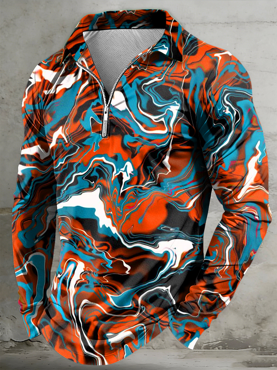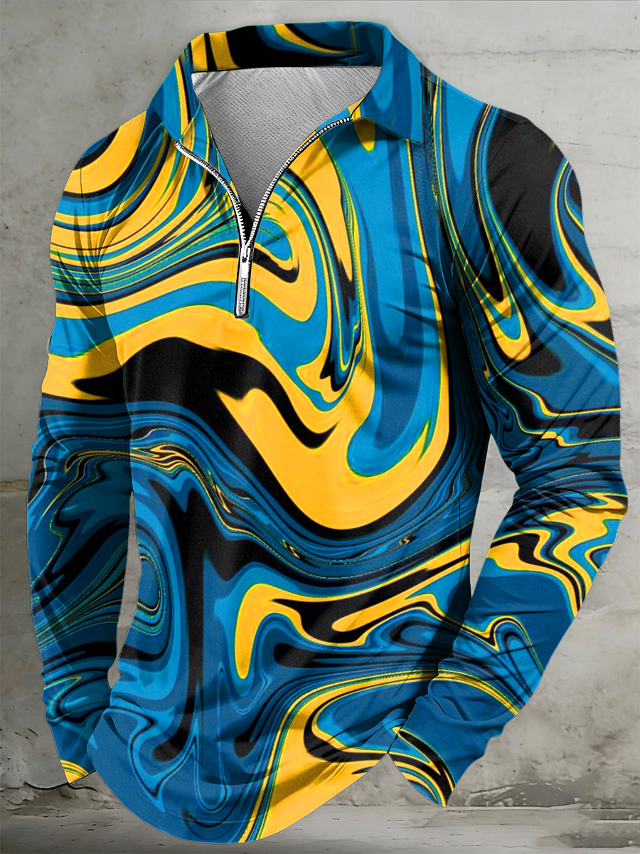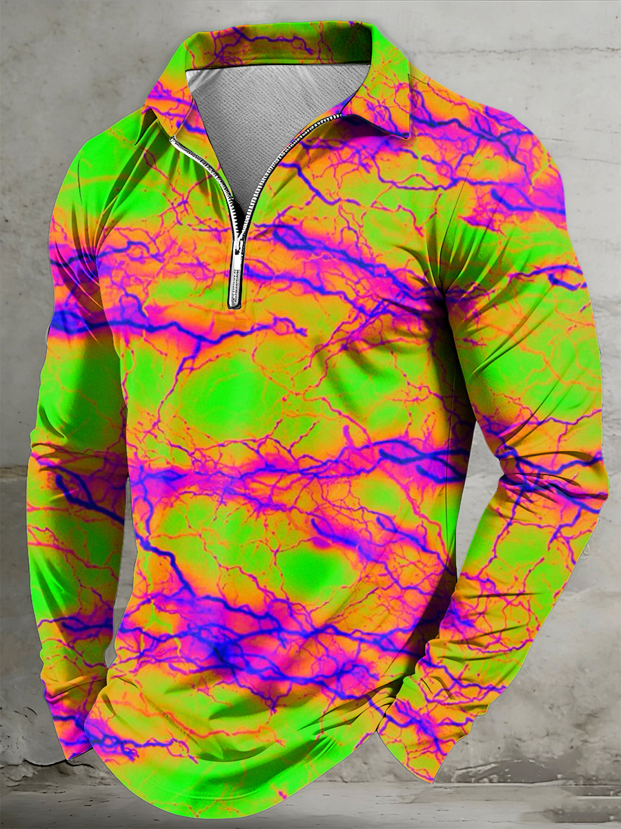 Men's Psychedelic Printed Half Zipper Lapel Long Sleeved Polo