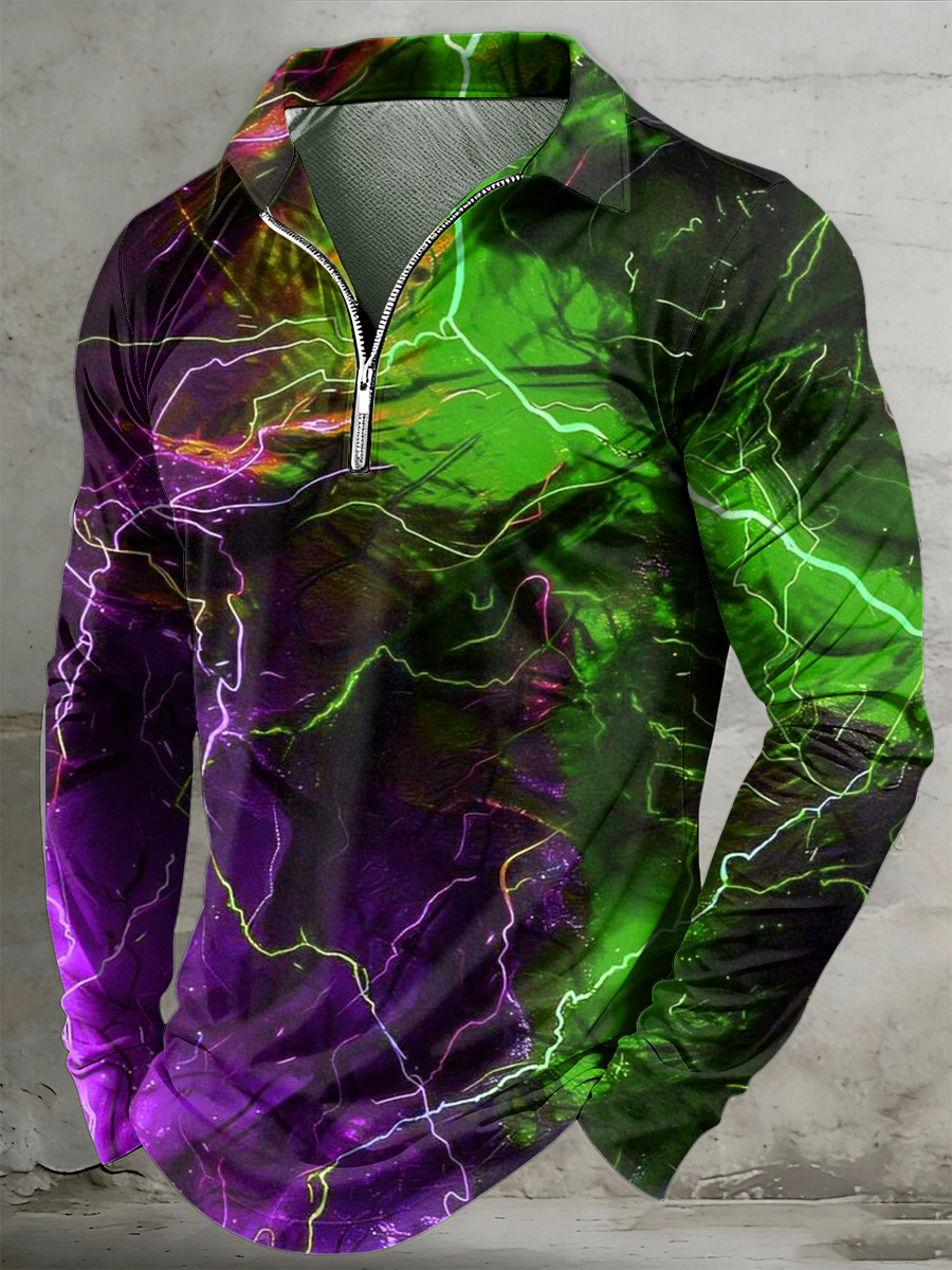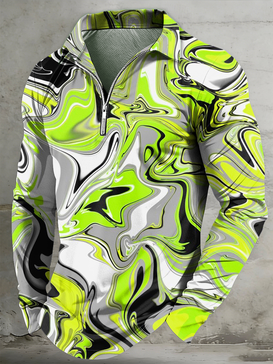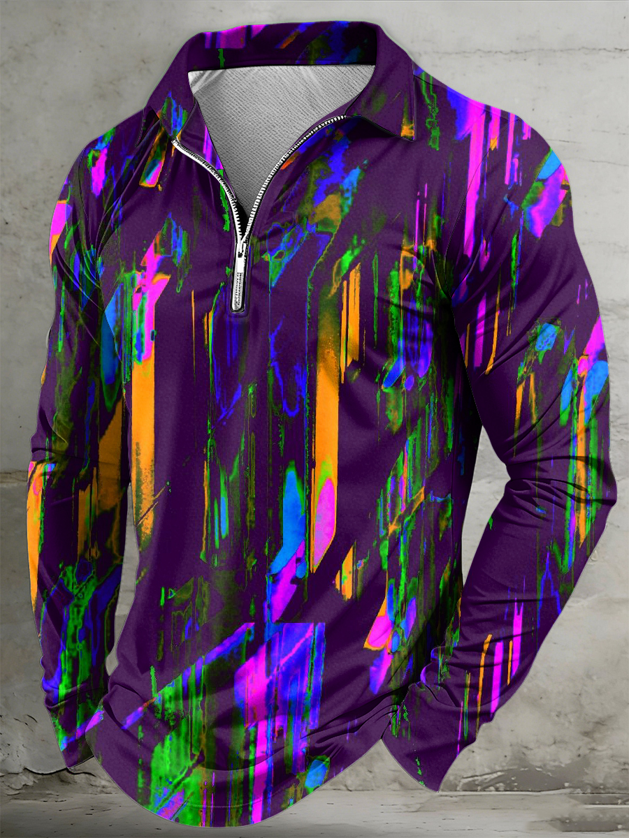 Men's Psychedelic Printed Half Zipper Lapel Long Sleeved Polo