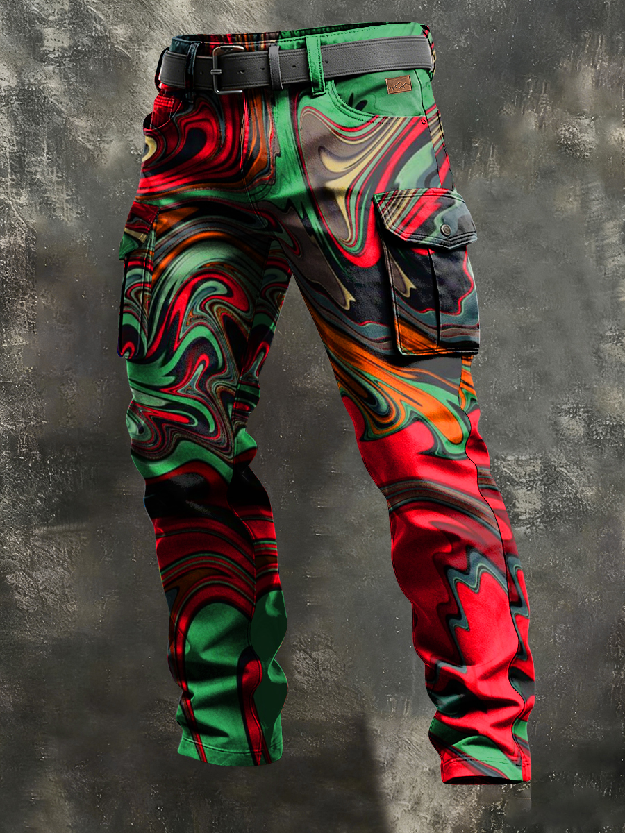 Men's Retro Vacation Business Psychedelic Abstract Art Print Casual Workwear Trousers
