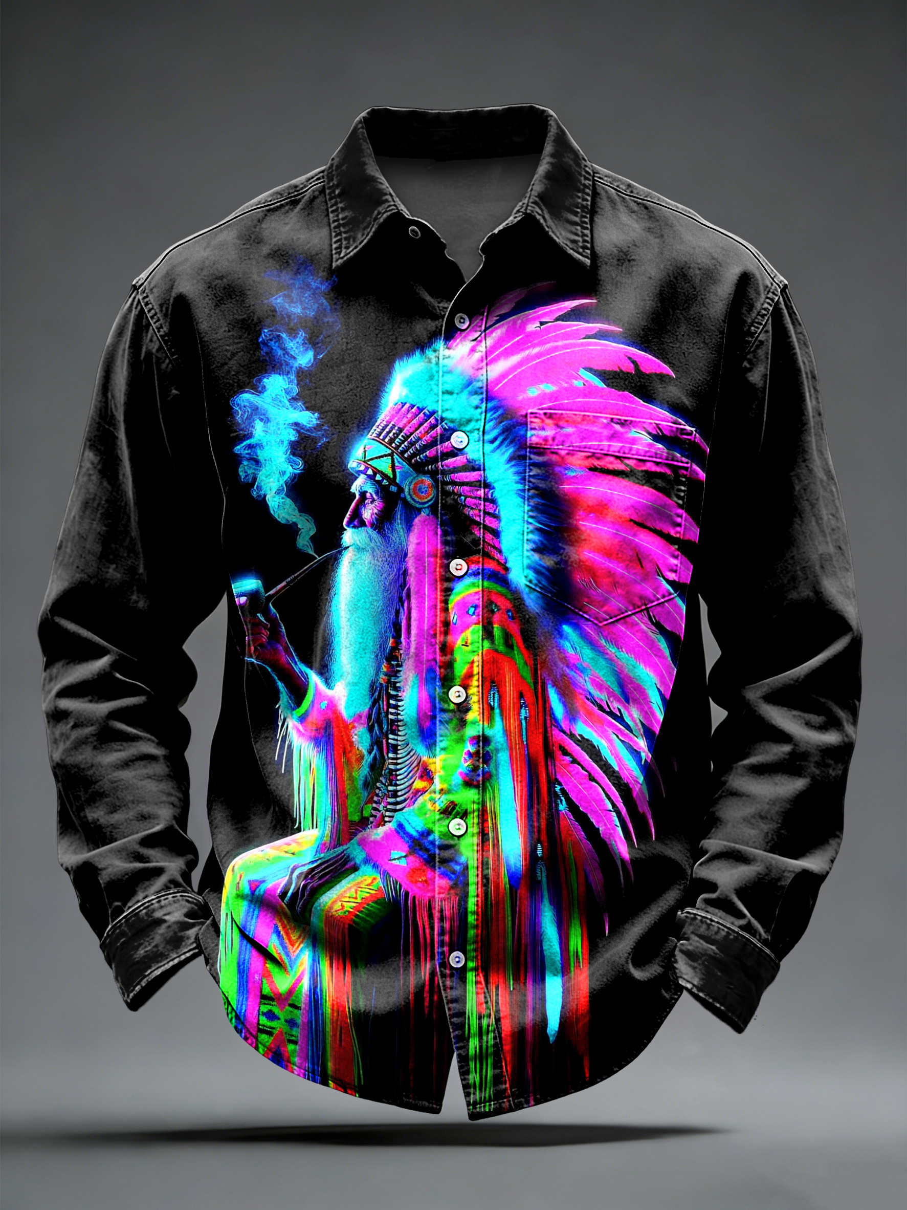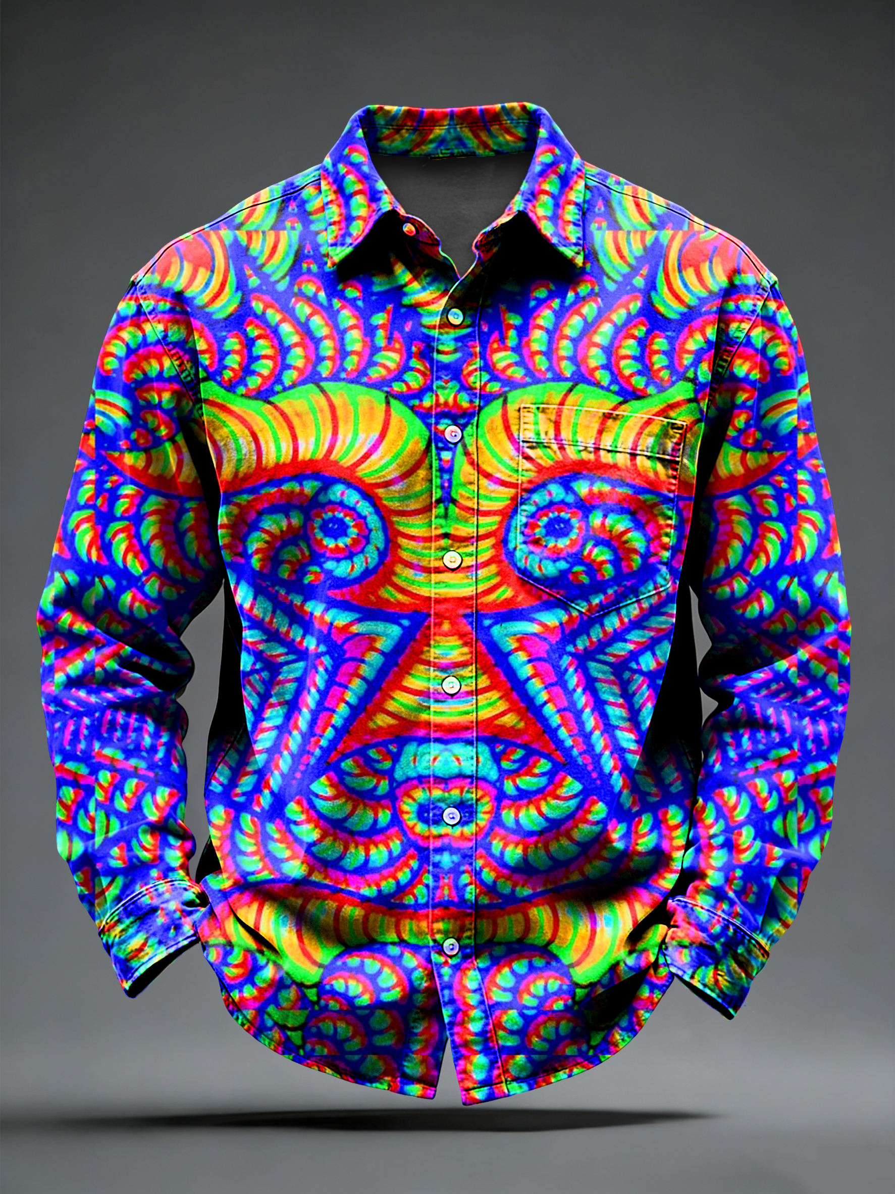 Men's Retro Psychedelic Punk Printed Long Sleeved Pocket Shirt