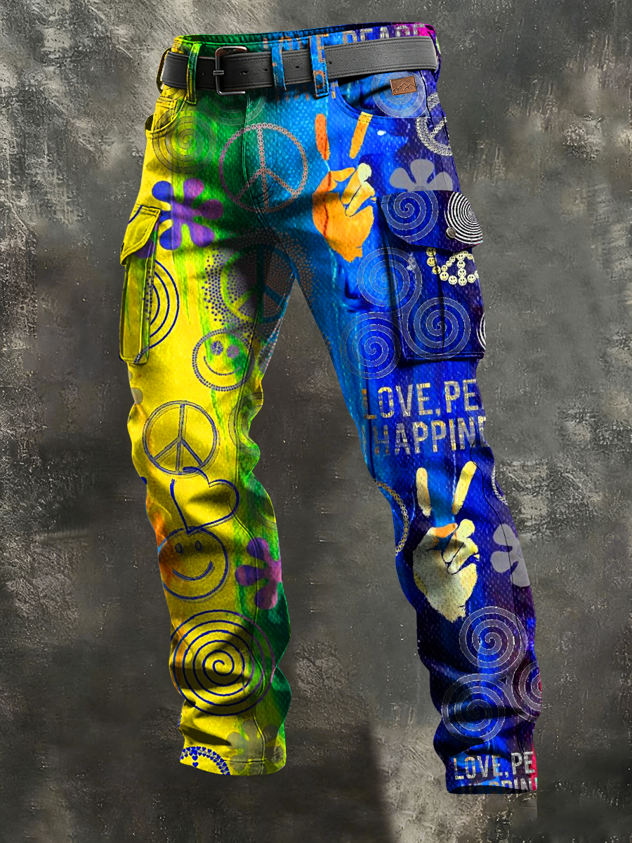 Men's Retro Vacation Business Psychedelic Art Print Casual Workwear Trousers