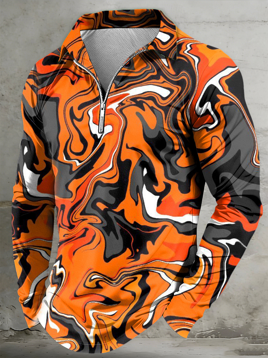 Men's Psychedelic Printed Half Zipper Lapel Long Sleeved Polo