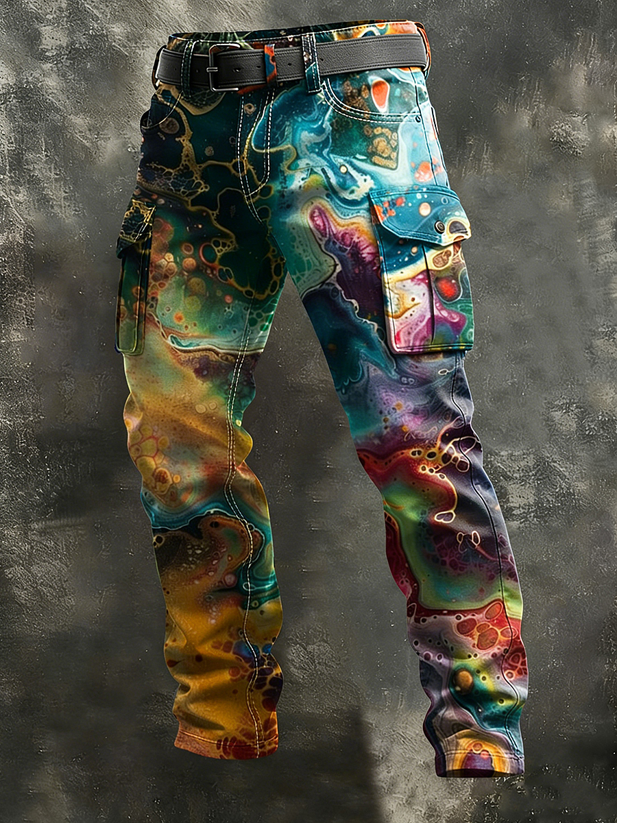 Men's Retro Vacation Business Psychedelic Art Print Casual Workwear Trousers