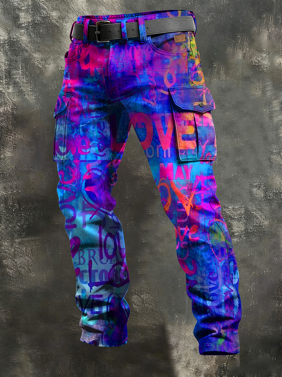 Men's Retro Vacation Business Psychedelic Art Print Casual Workwear Trousers