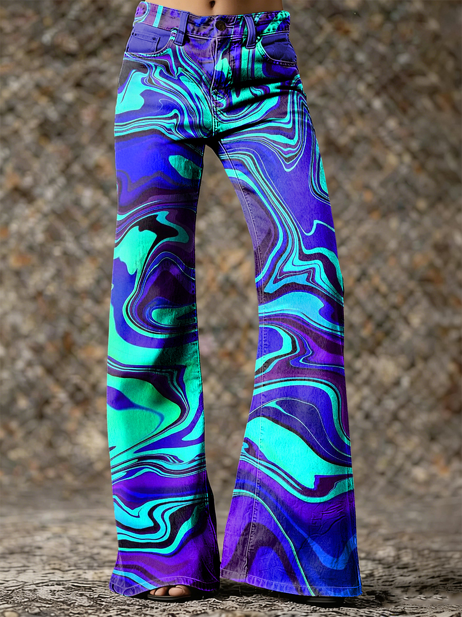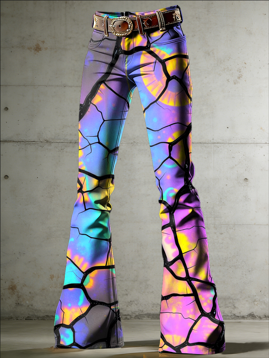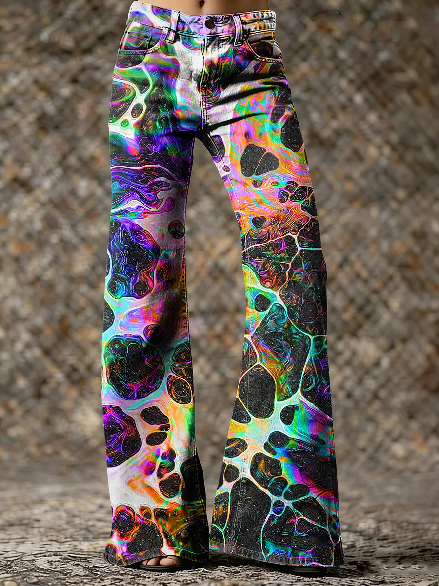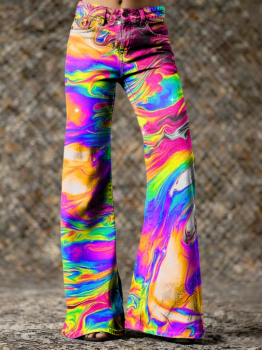 Women's Psychedelic Art Print Flared Trousers