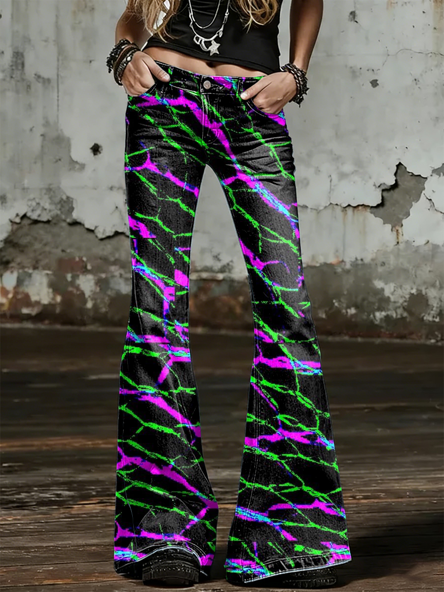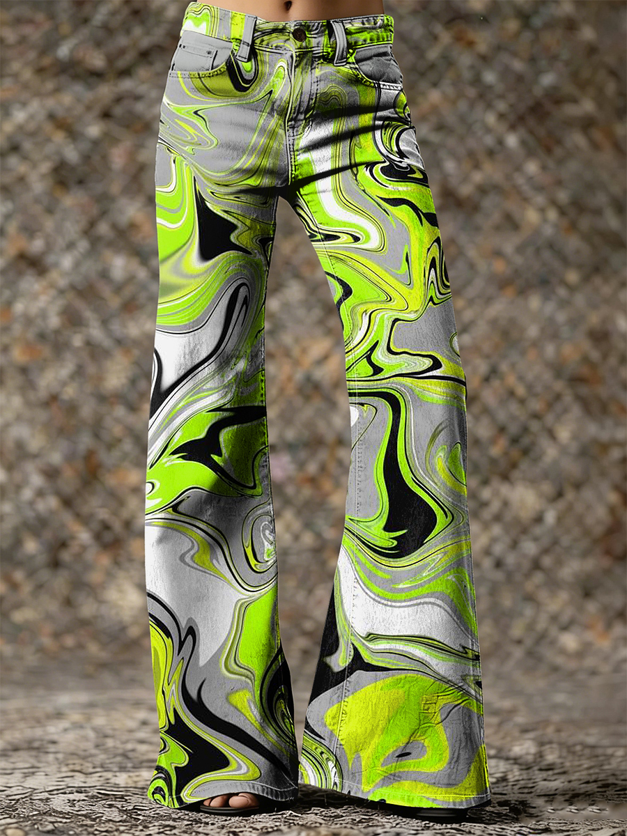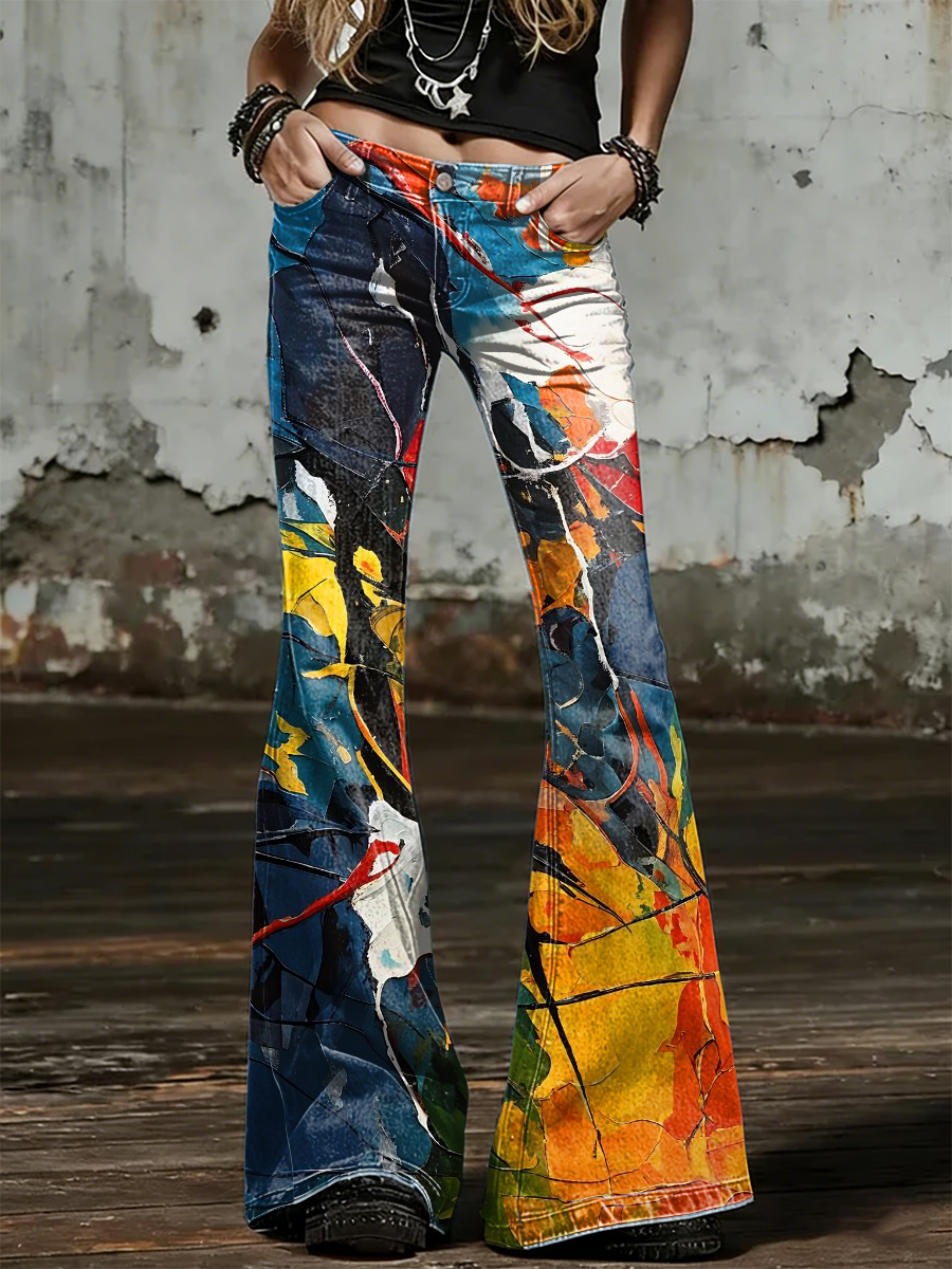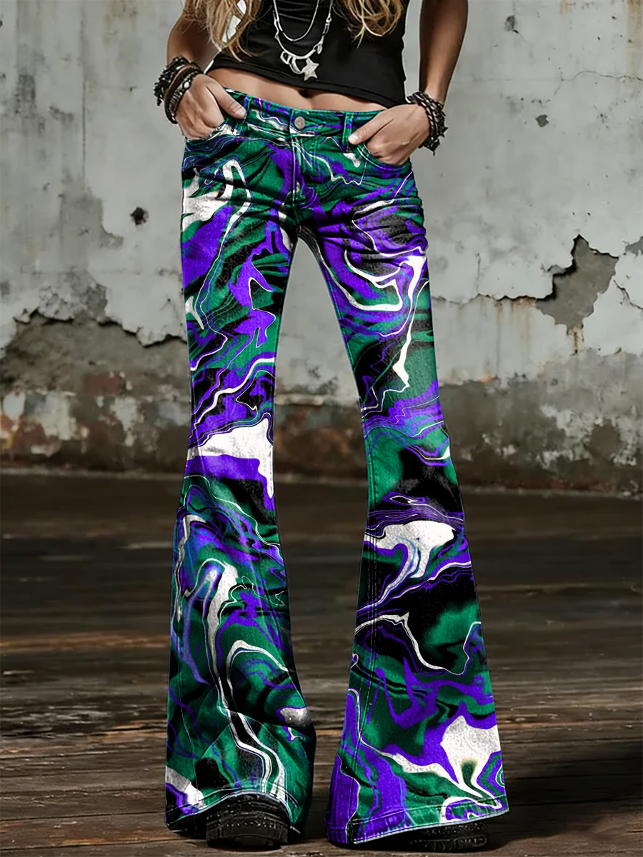 Women's Psychedelic Art Print Flared Trousers