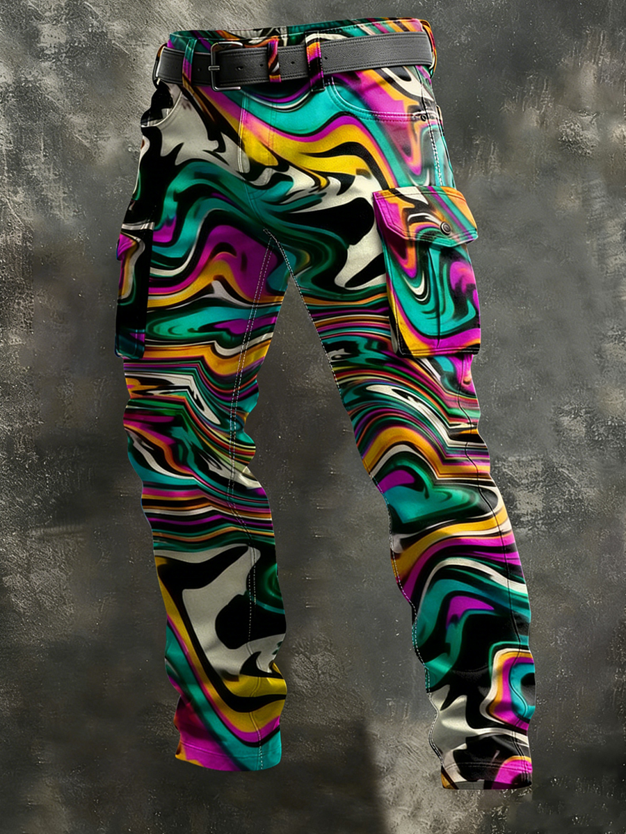 Men's Retro Vacation Business Psychedelic Art Print Casual Workwear Trousers