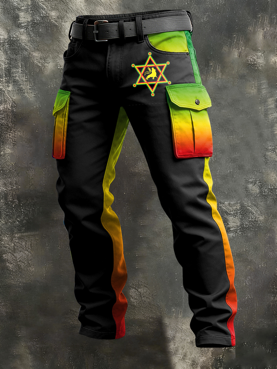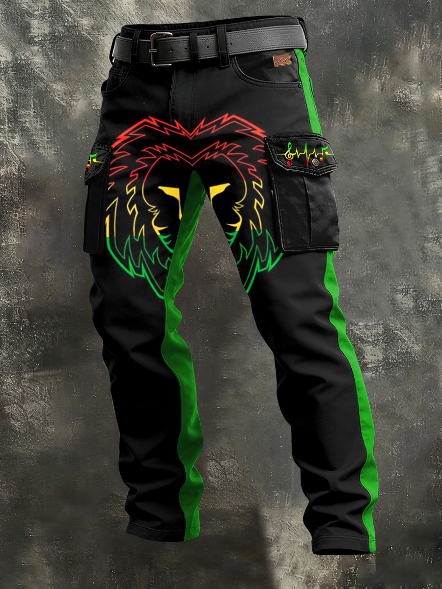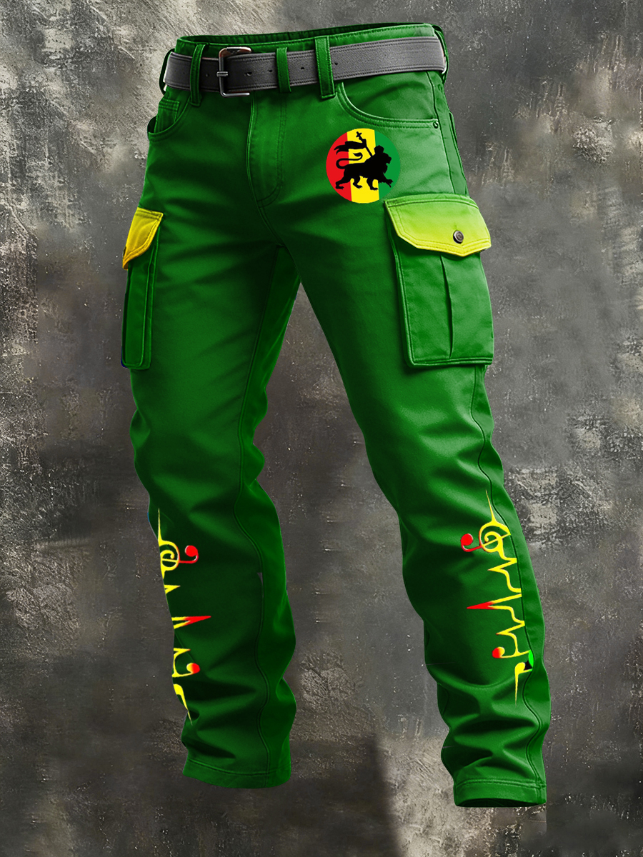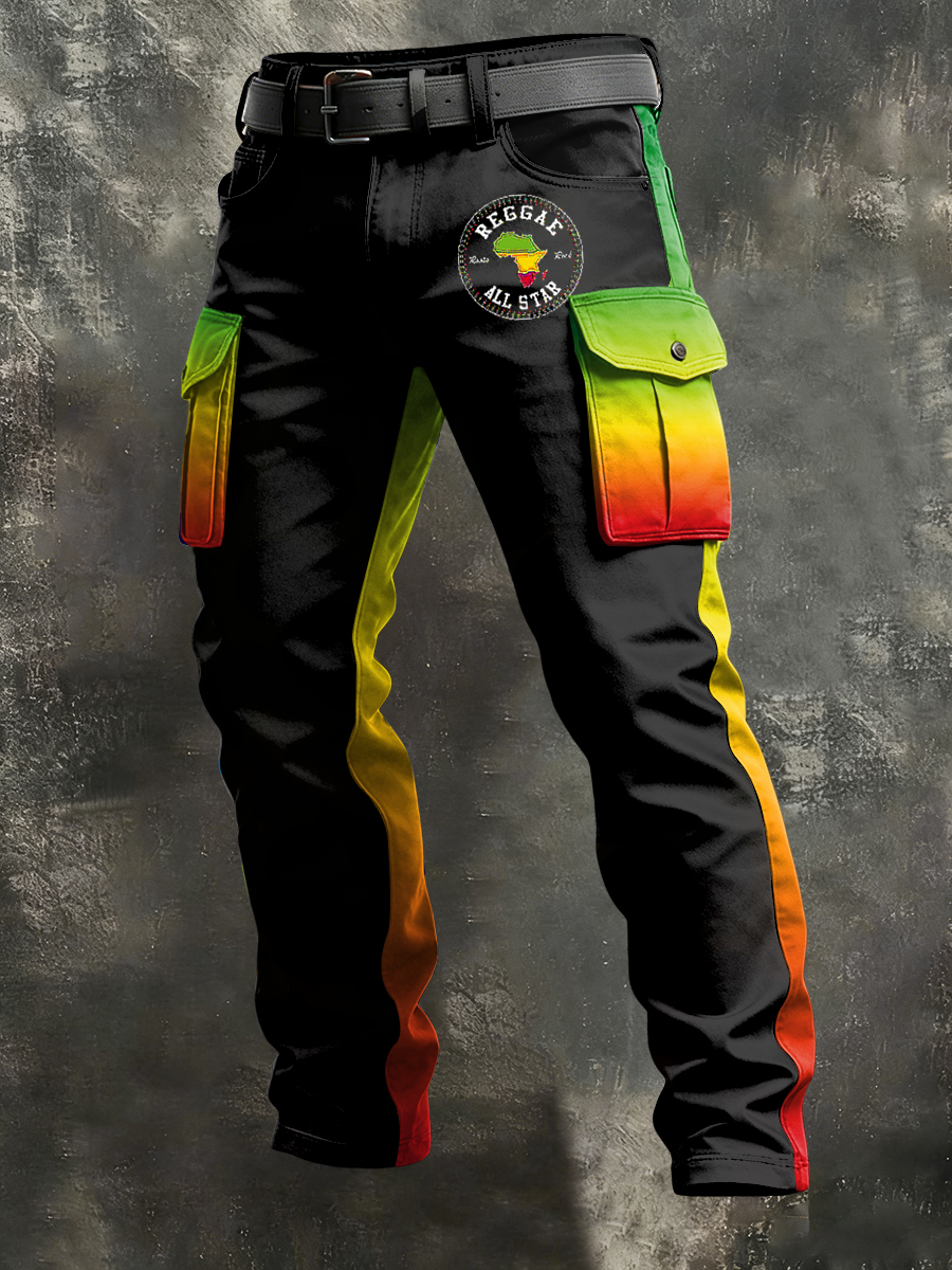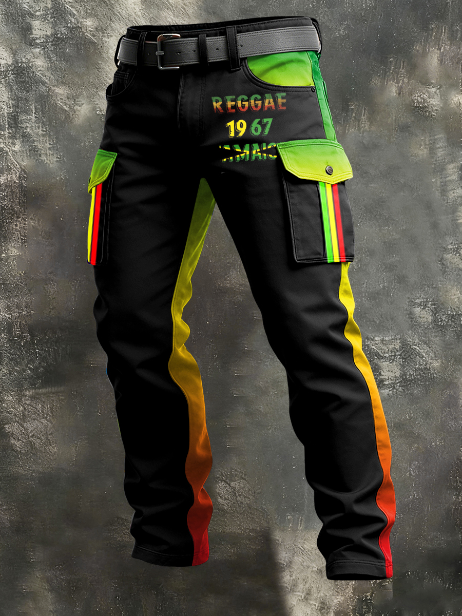 Men's Retro Reggae Art Print Casual Workwear Trousers