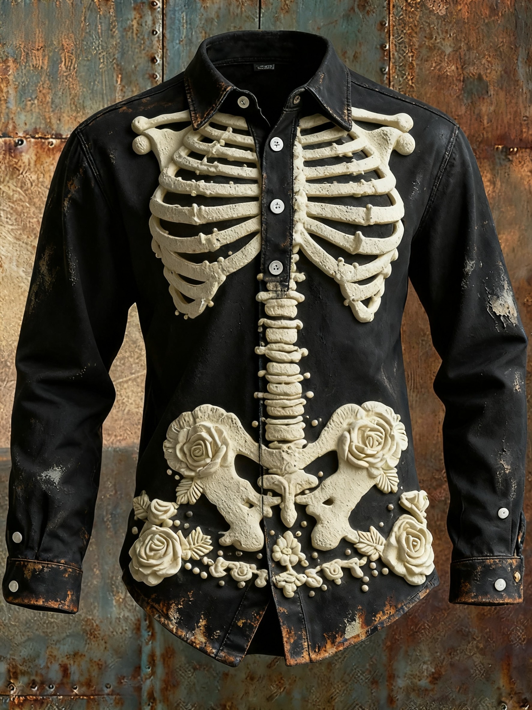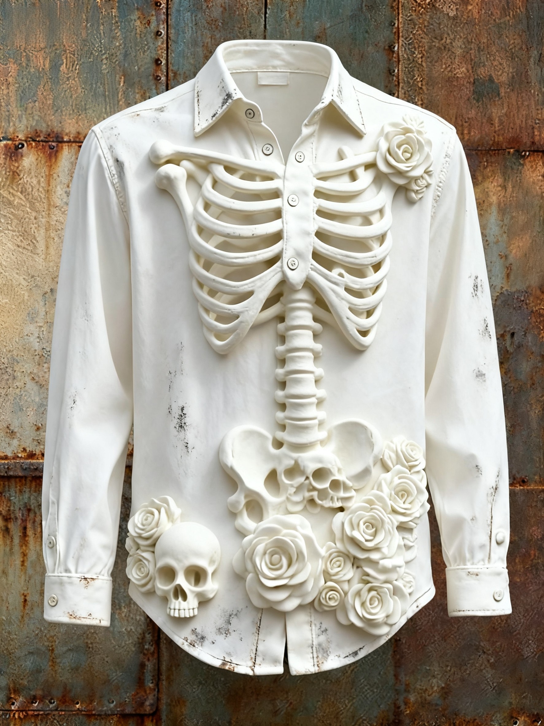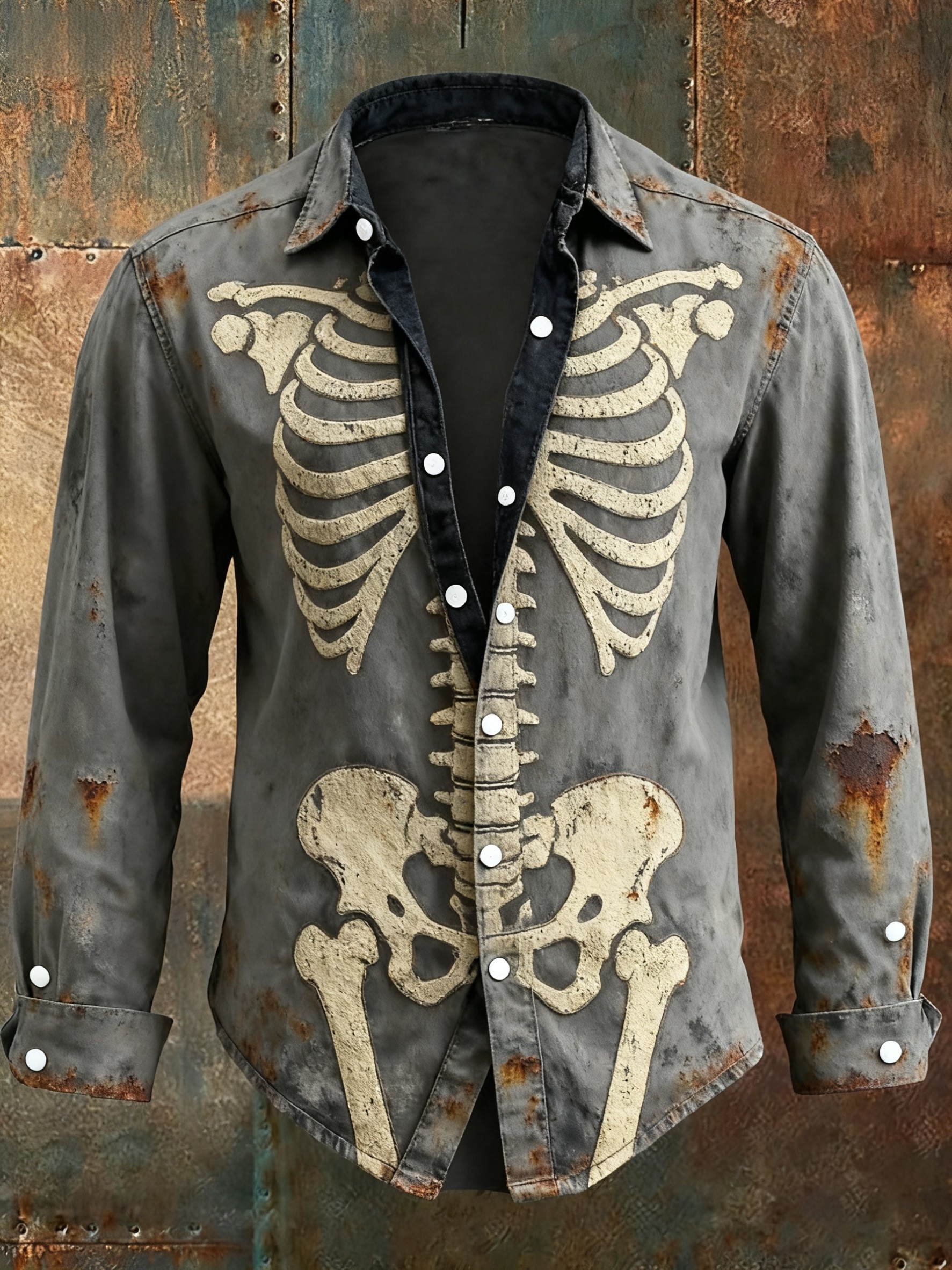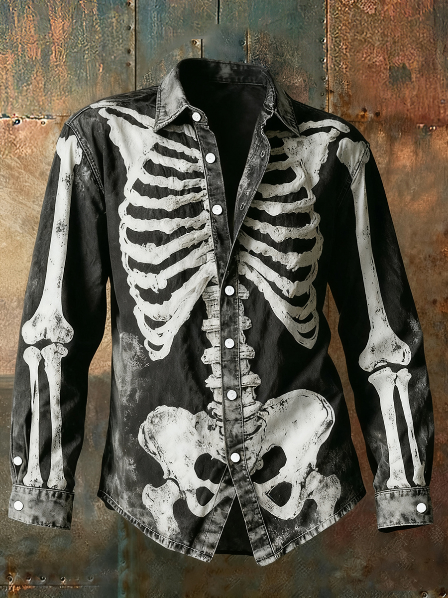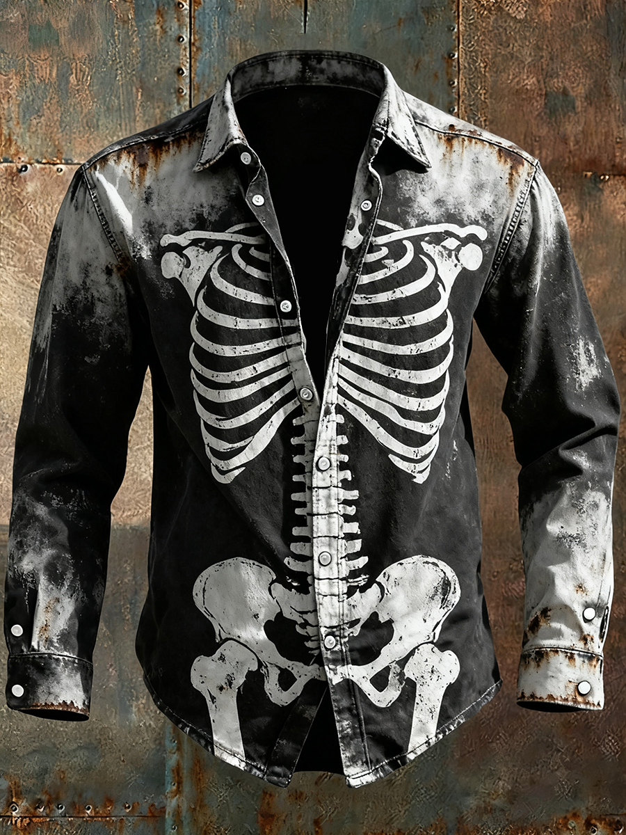 Men's Retro Punk Halloween Skull Skeleton Abstract Print Casual Long Sleeve Shirt