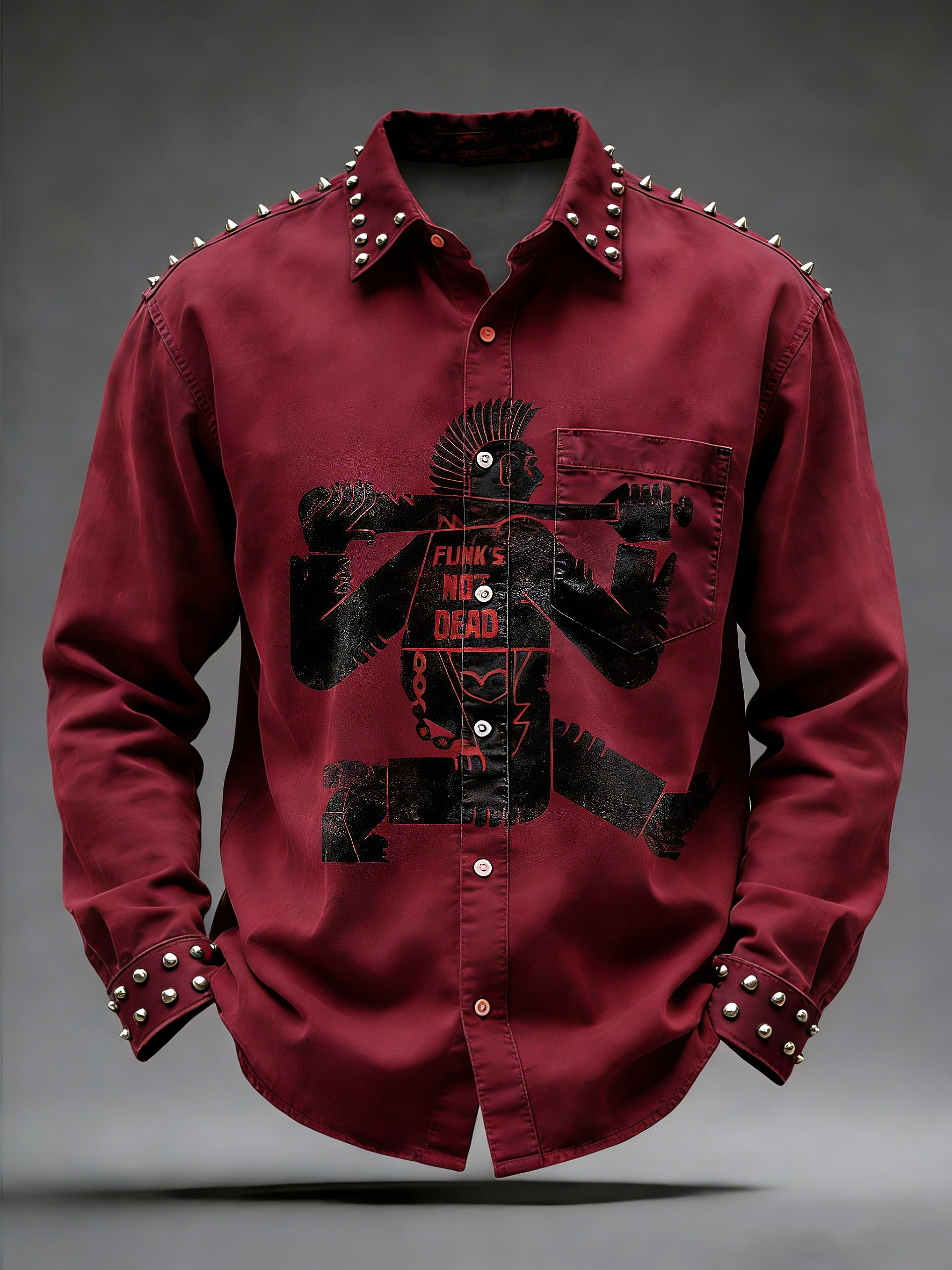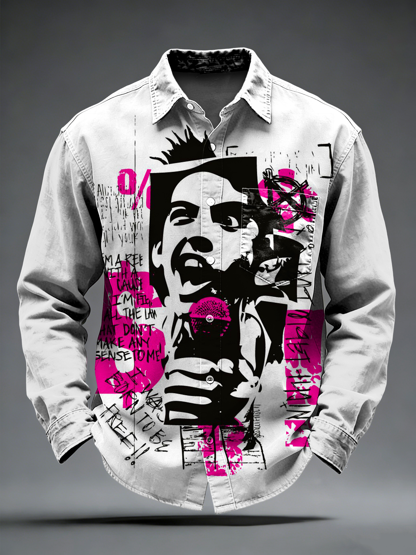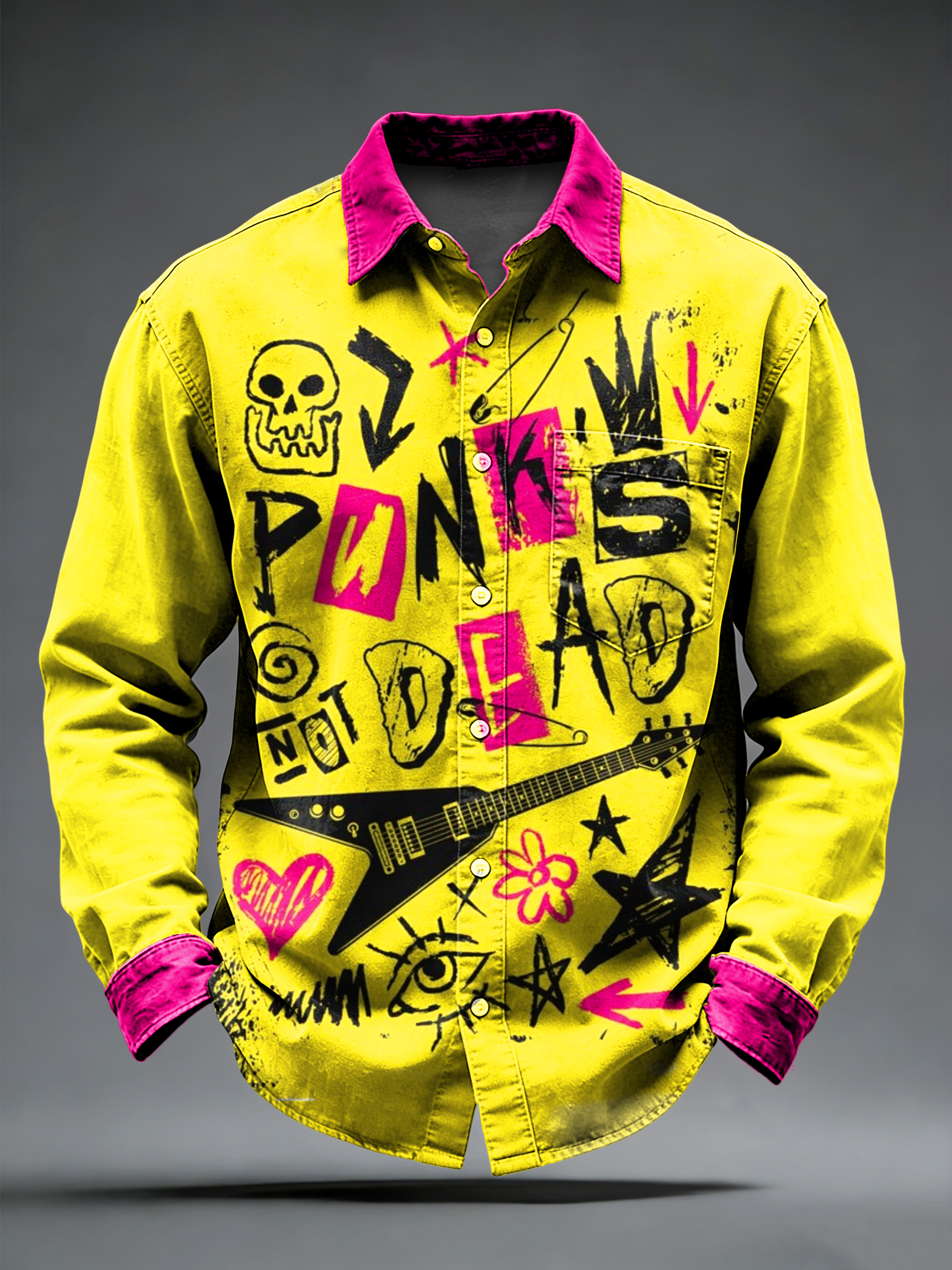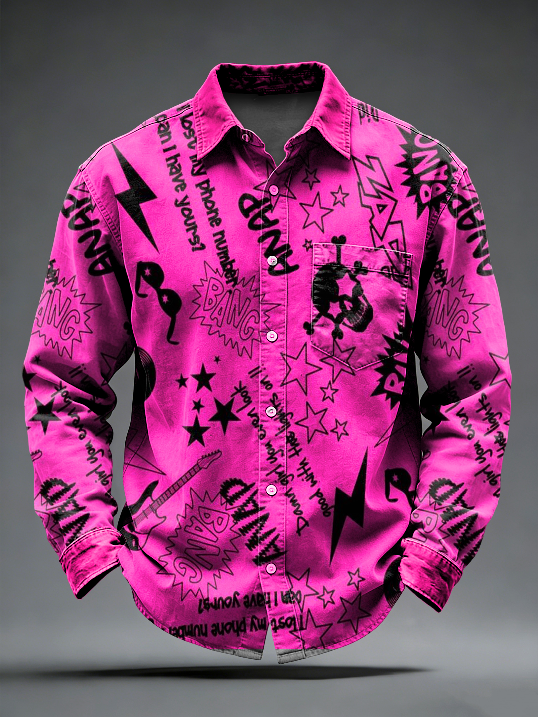 Men's Retro Punk Music Printed Long Sleeved Pocket Shirt
