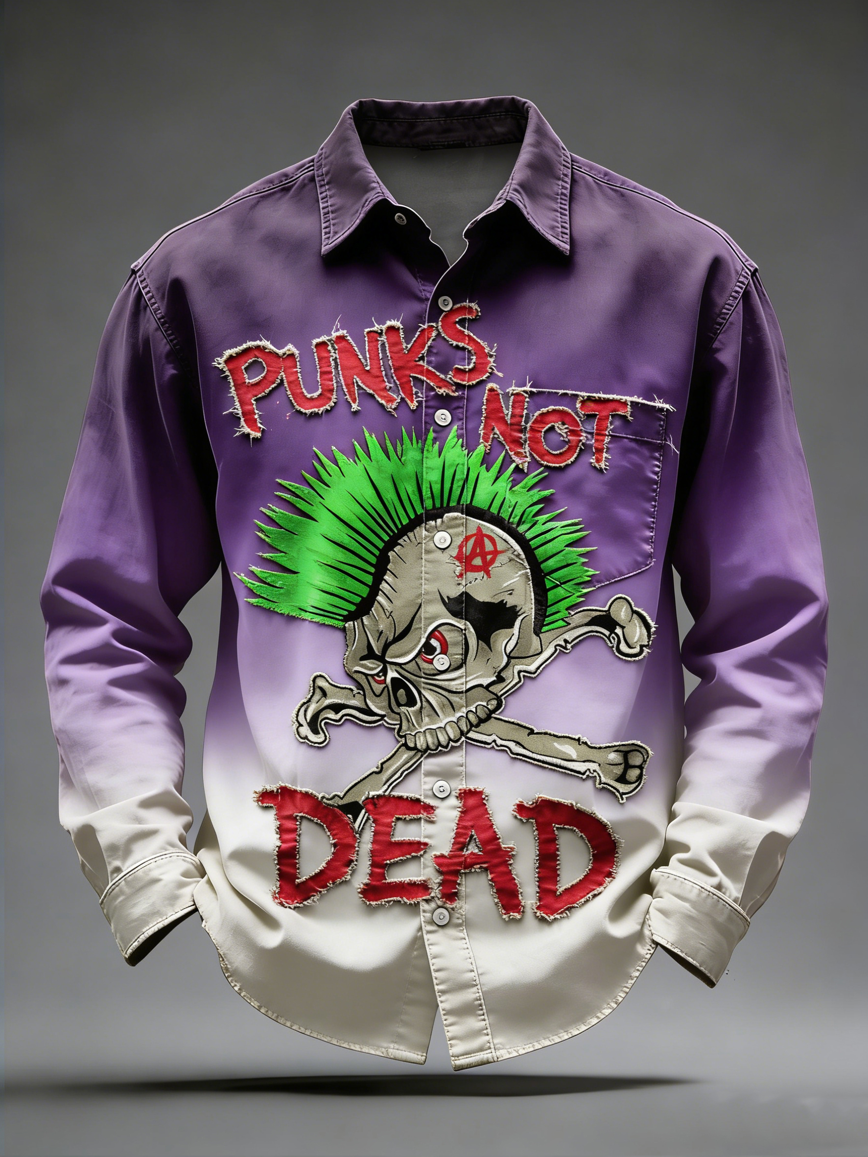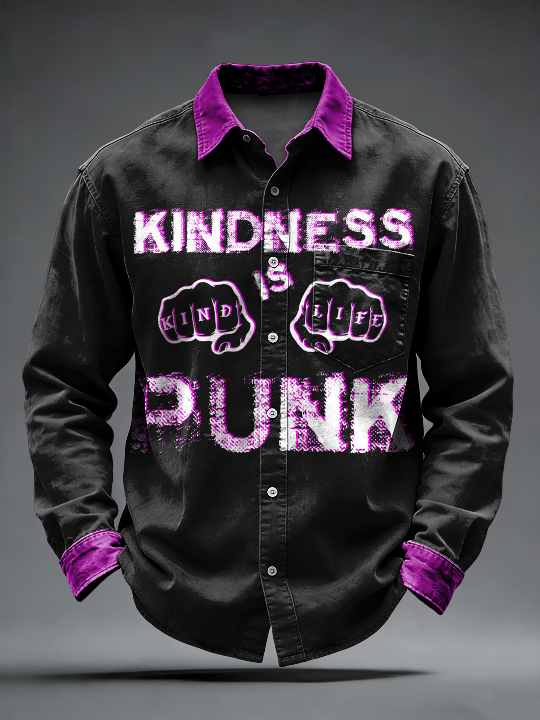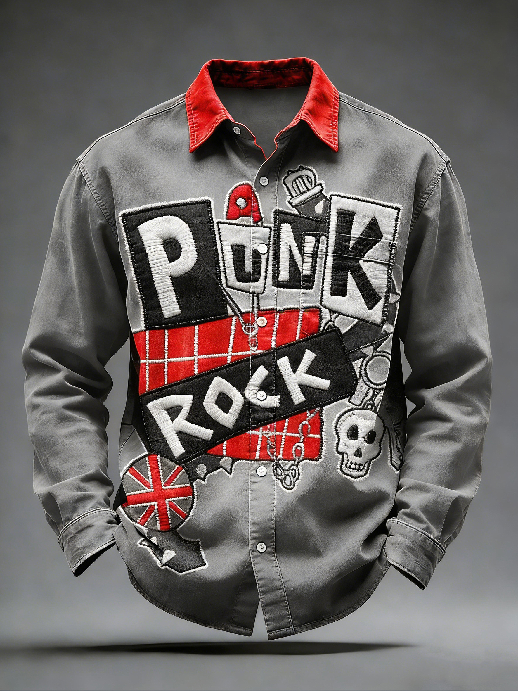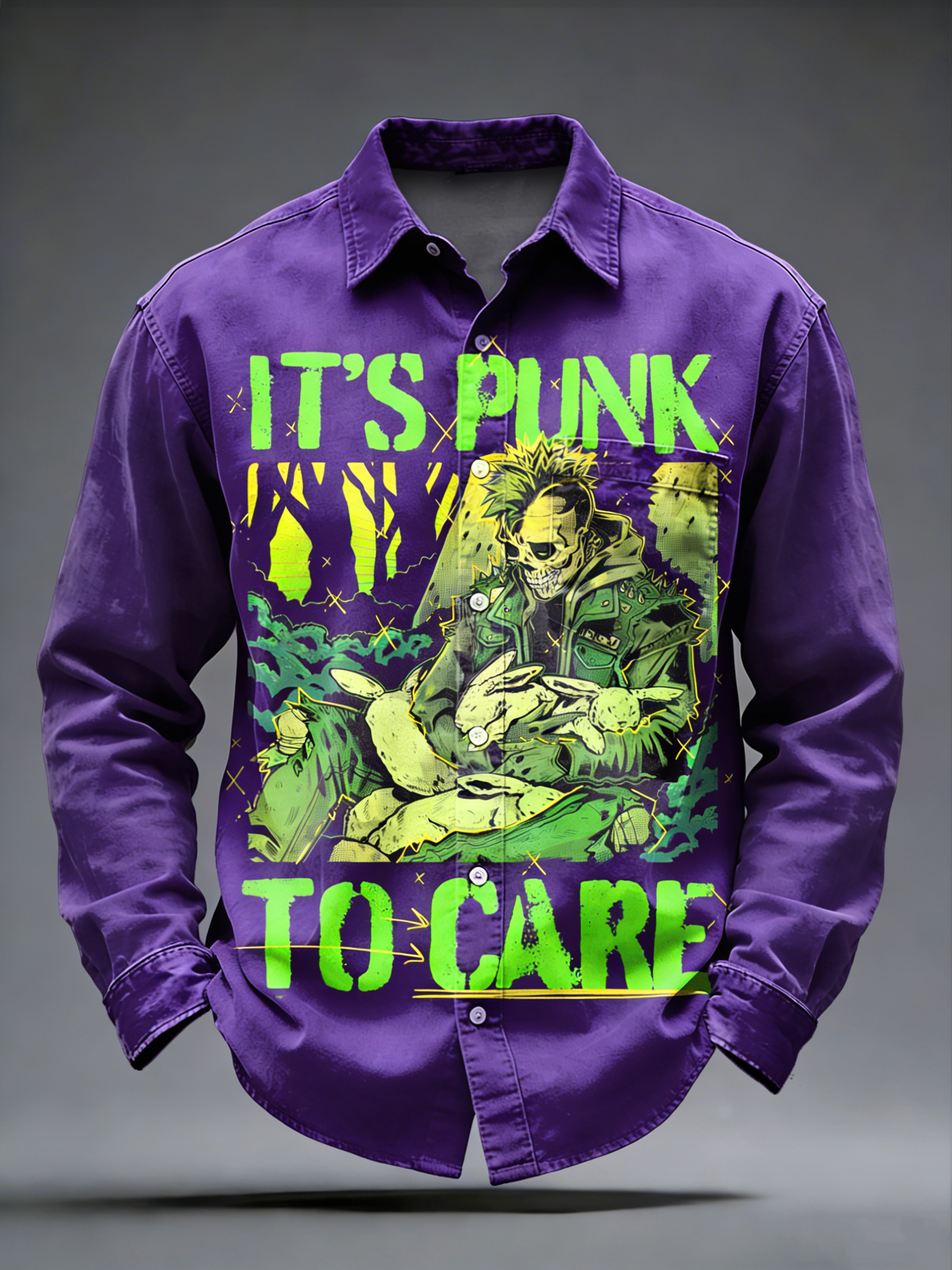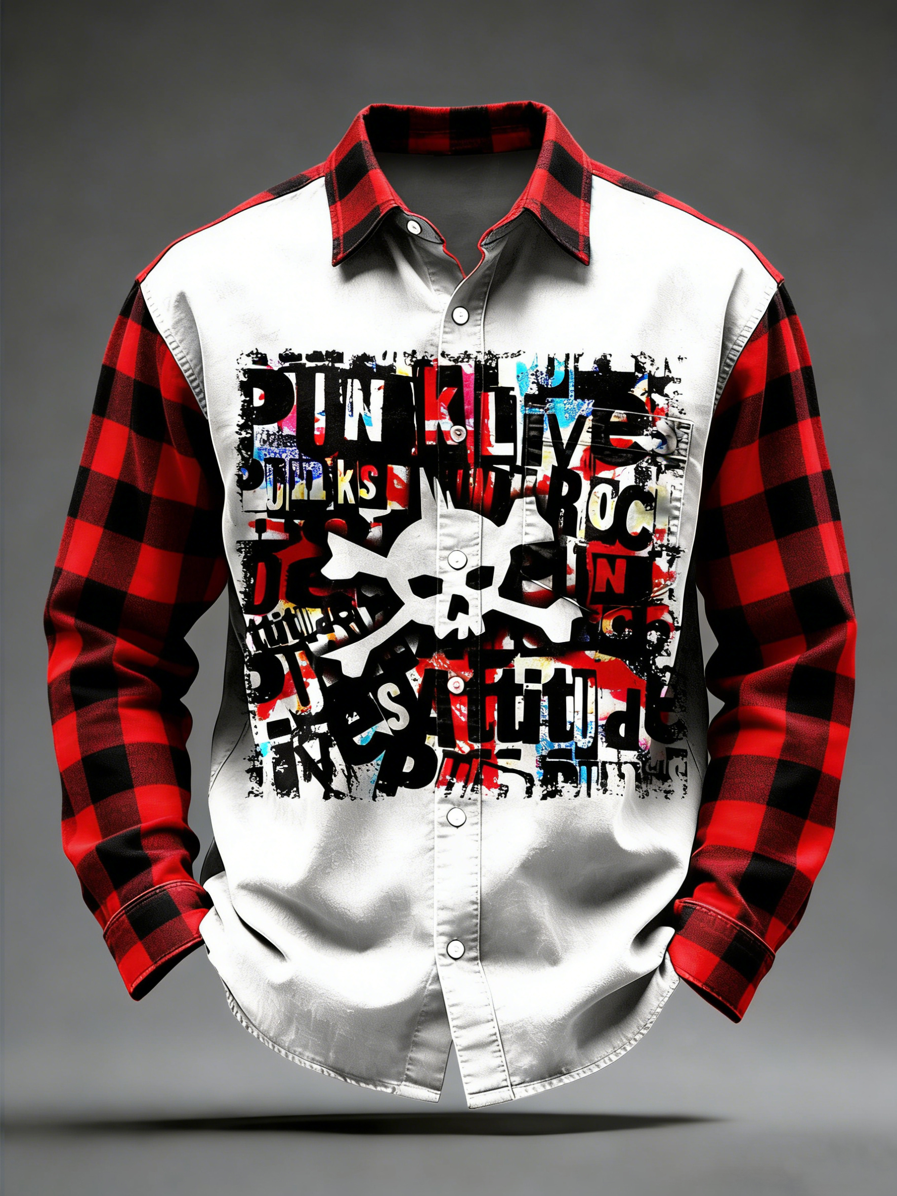 Men's Retro Punk Music Printed Long Sleeved Pocket Shirt