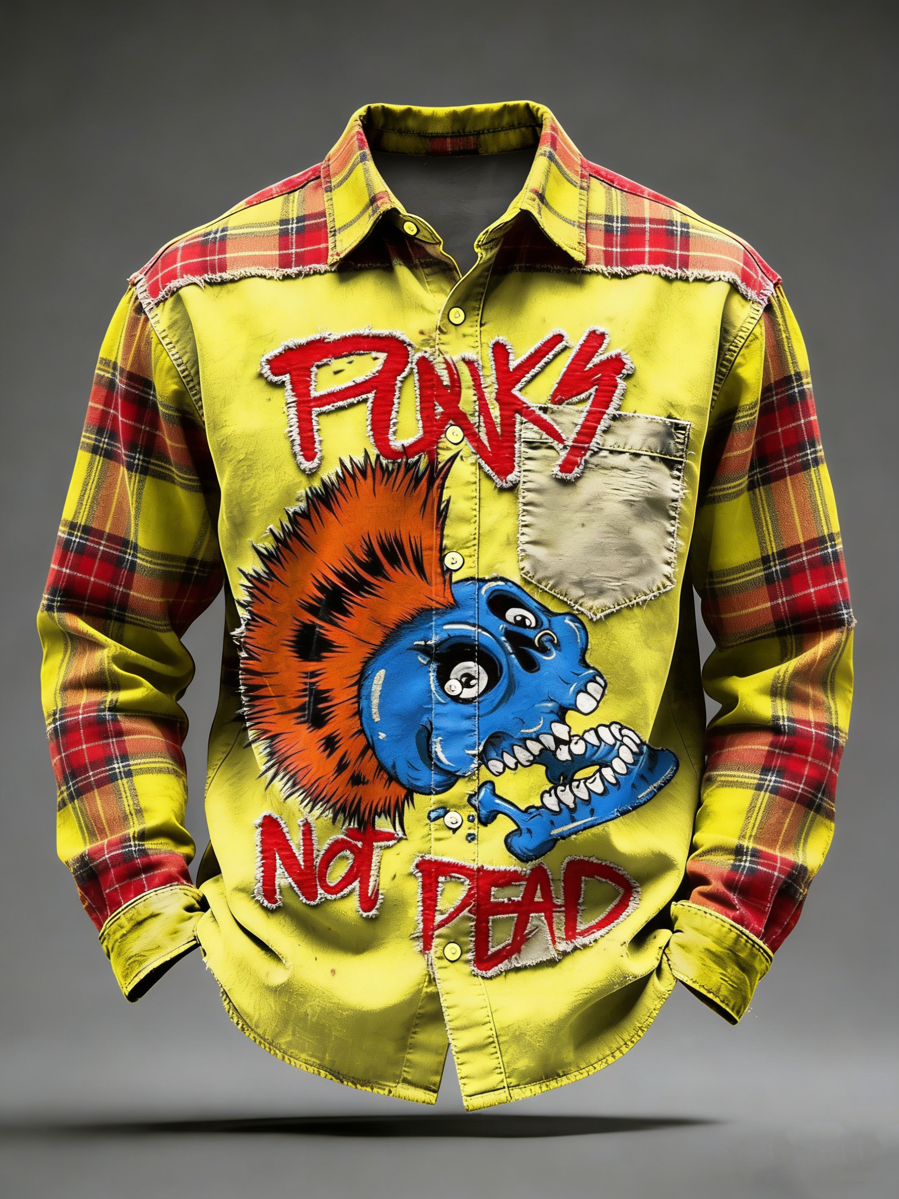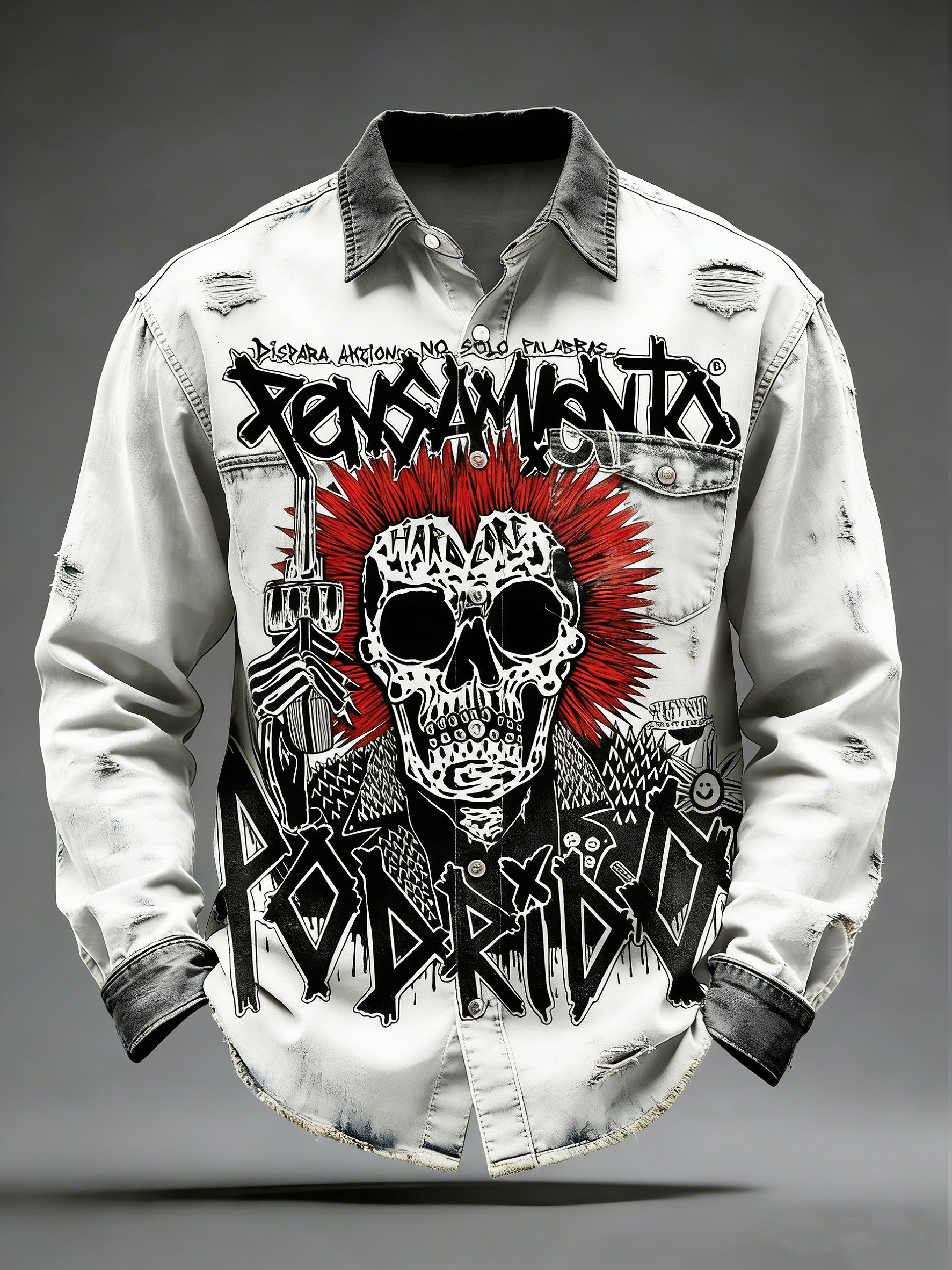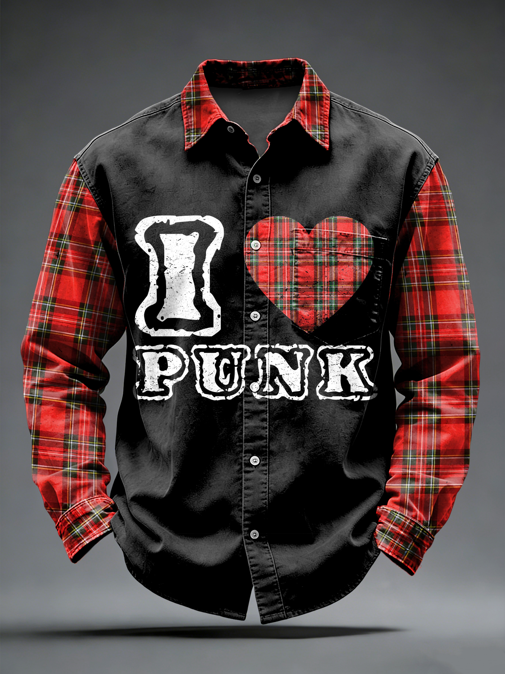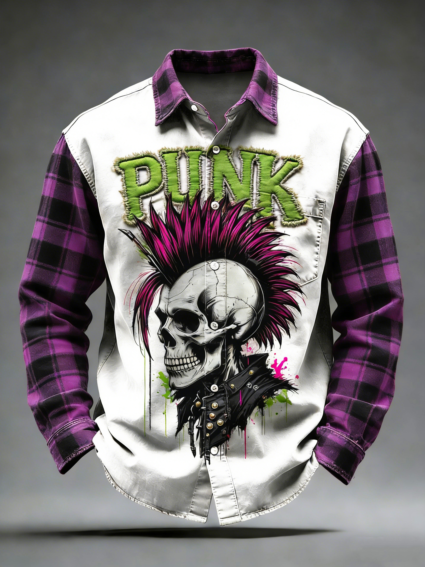 Men's Retro Punk Music Printed Long Sleeved Pocket Shirt