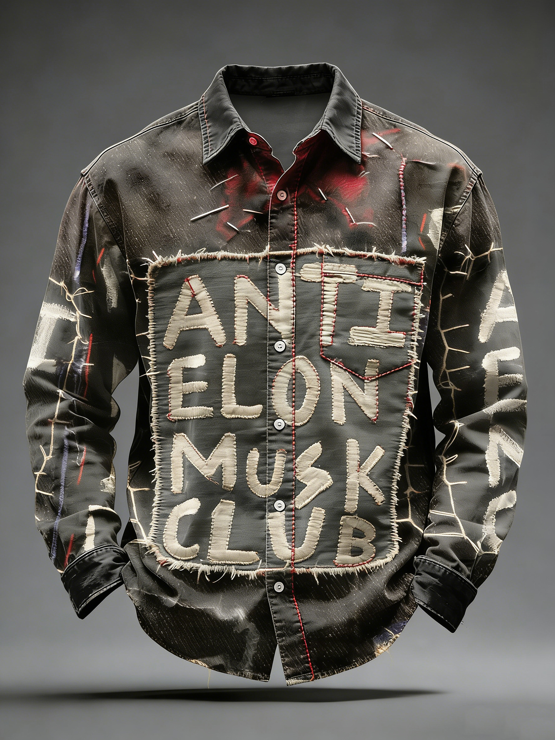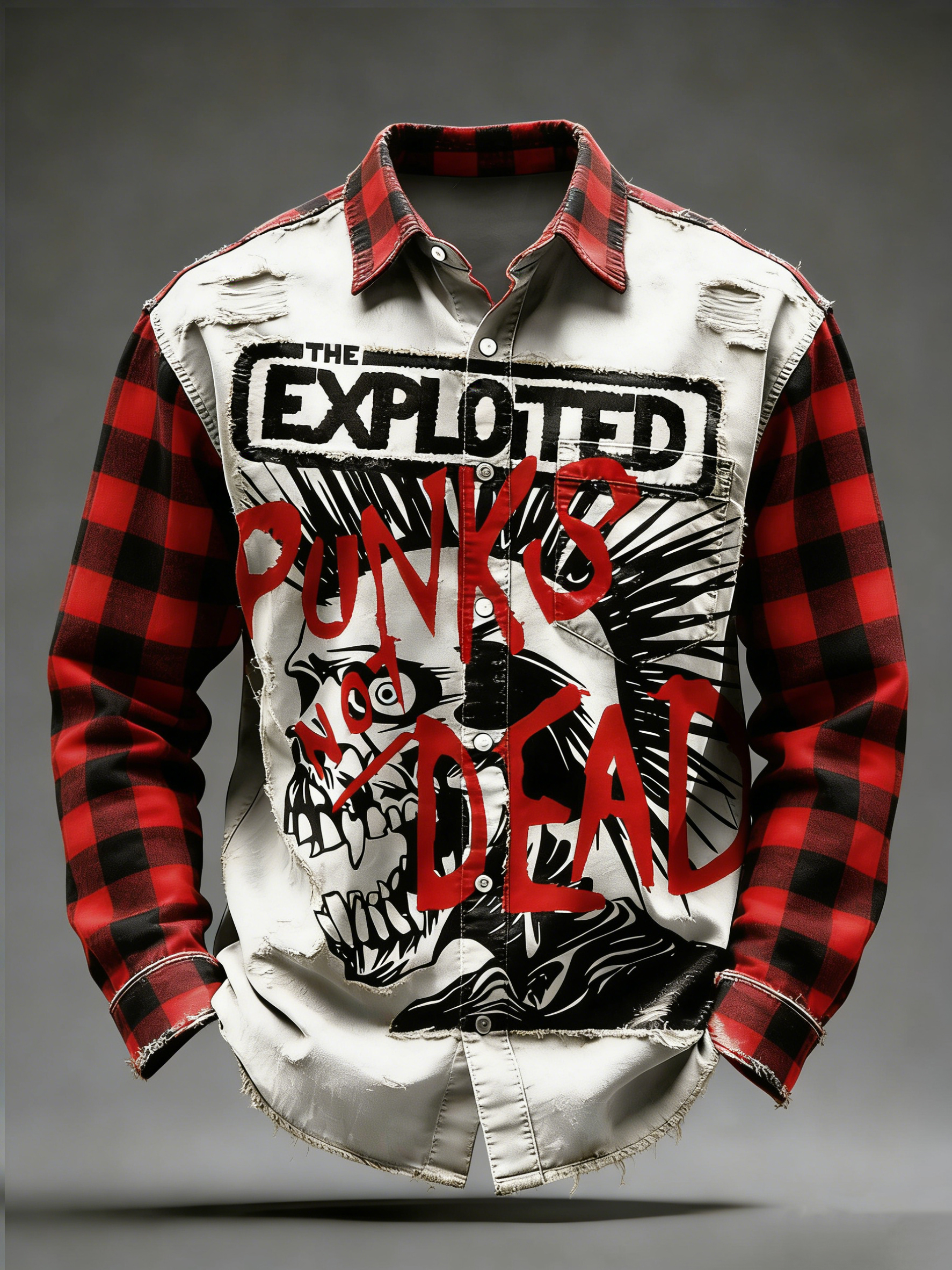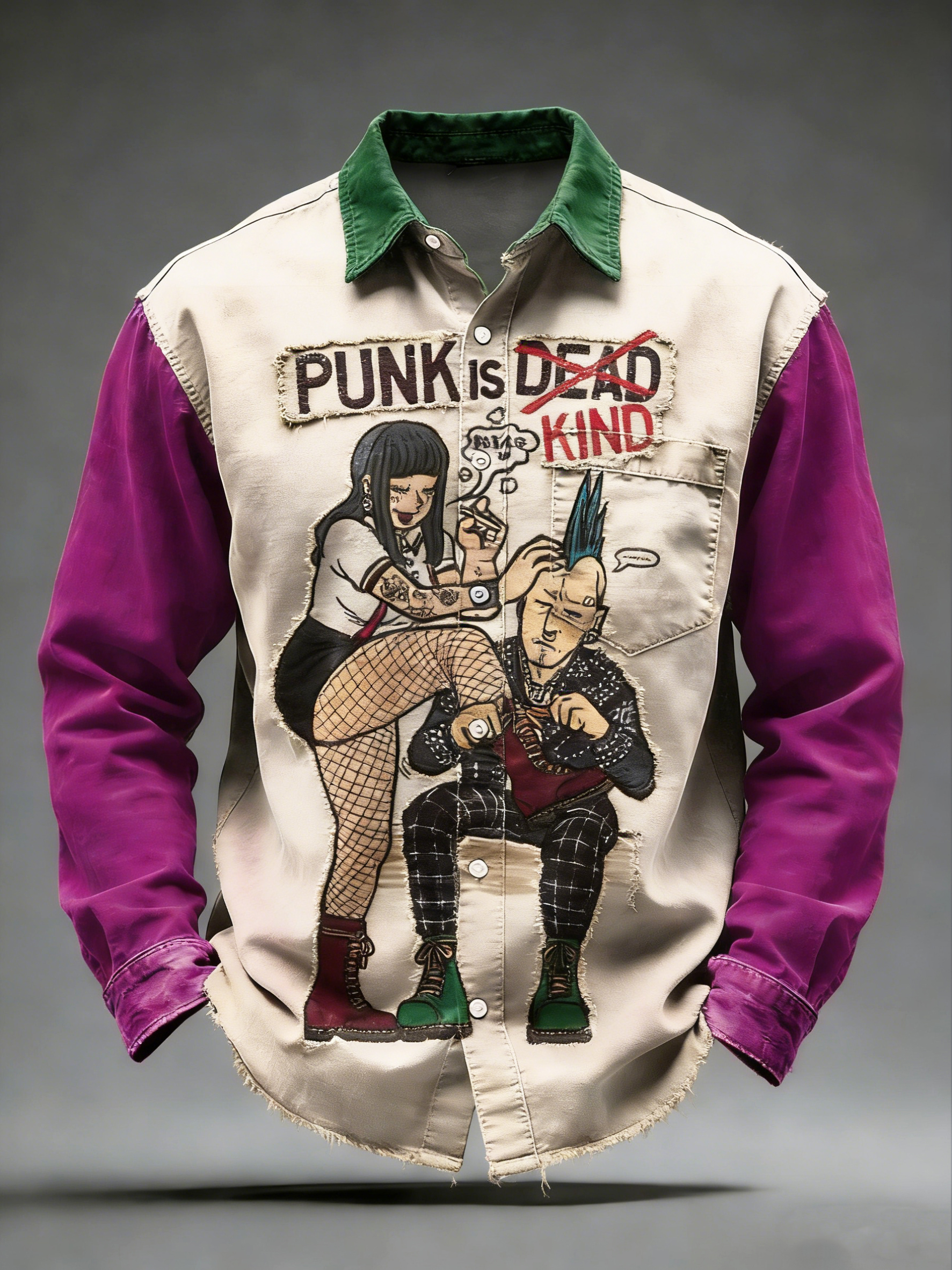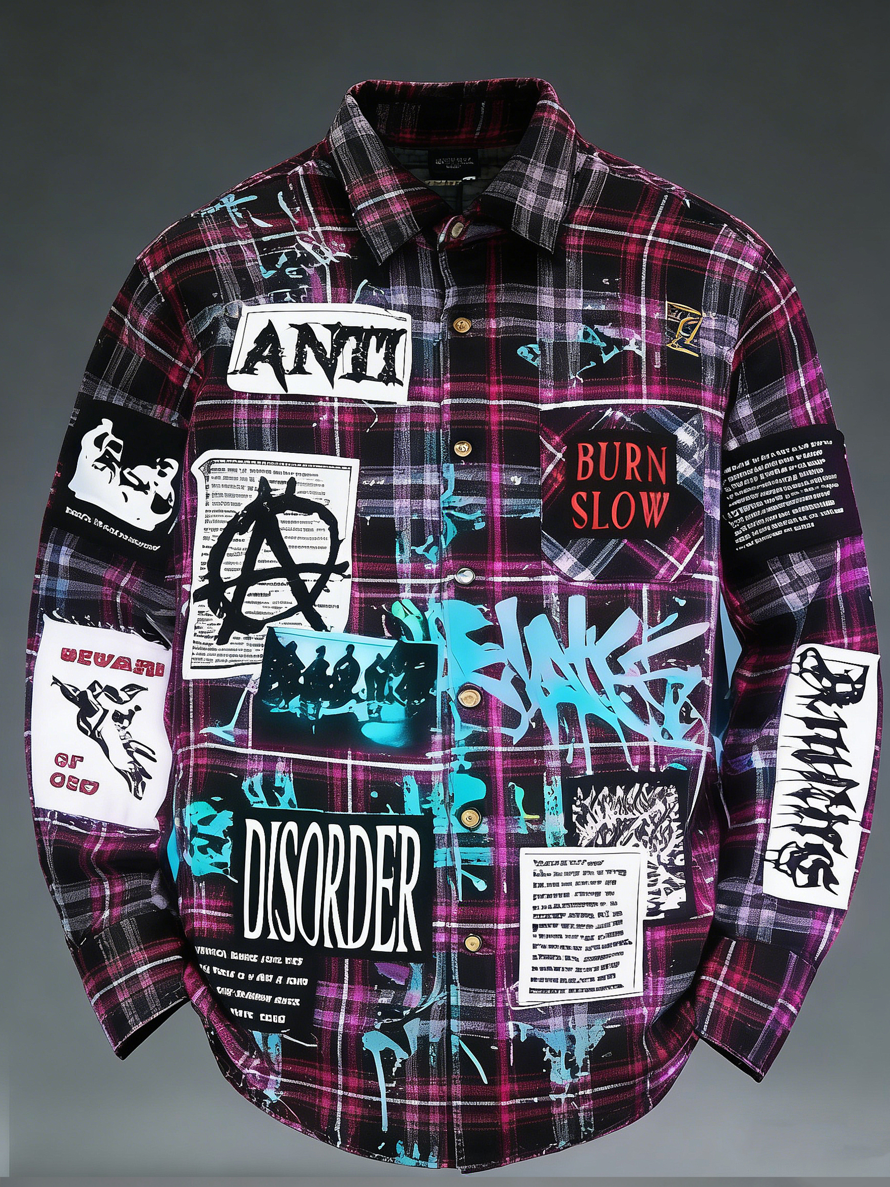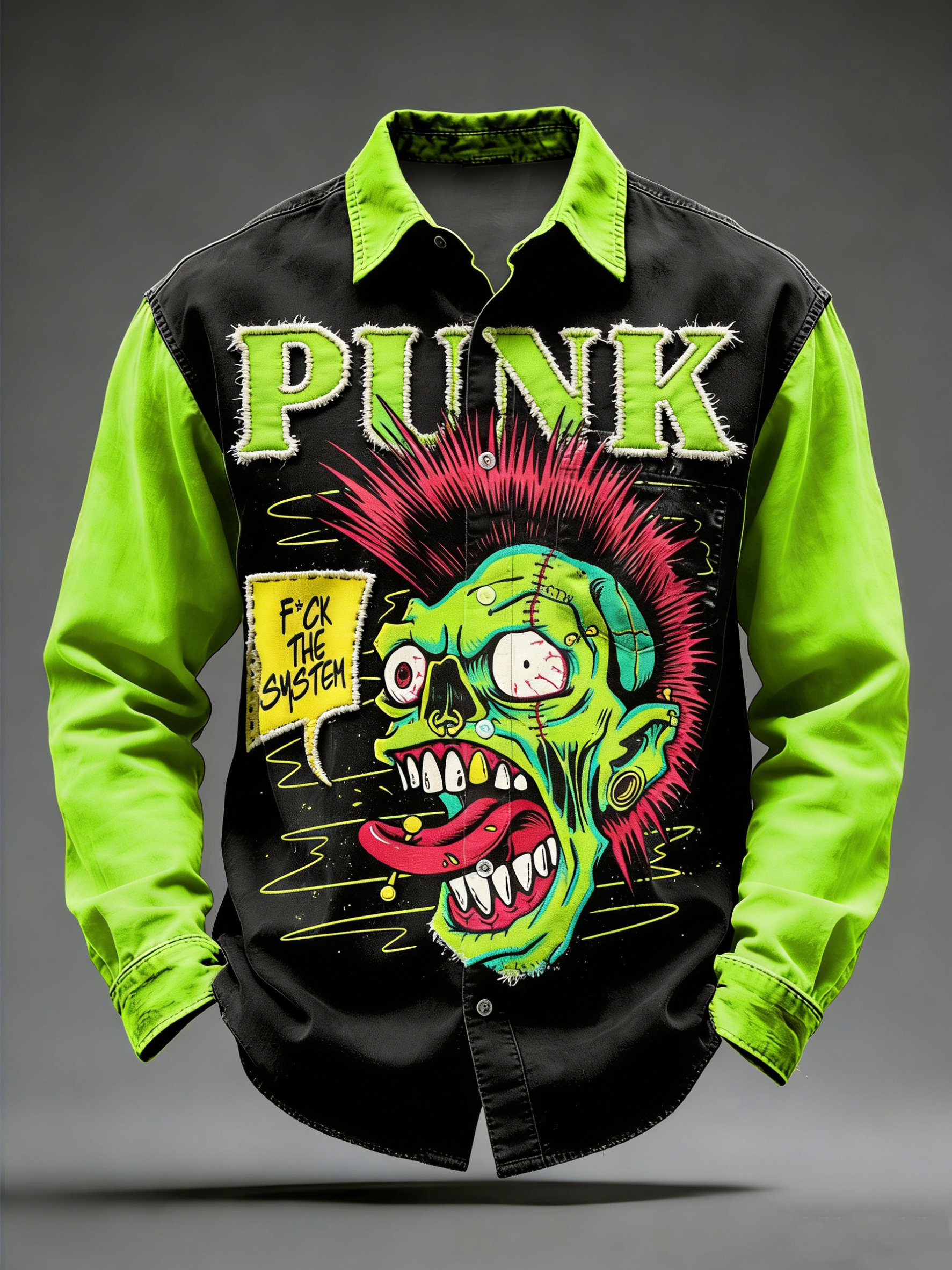Men's Retro Punk Music Printed Long Sleeved Pocket Shirt
