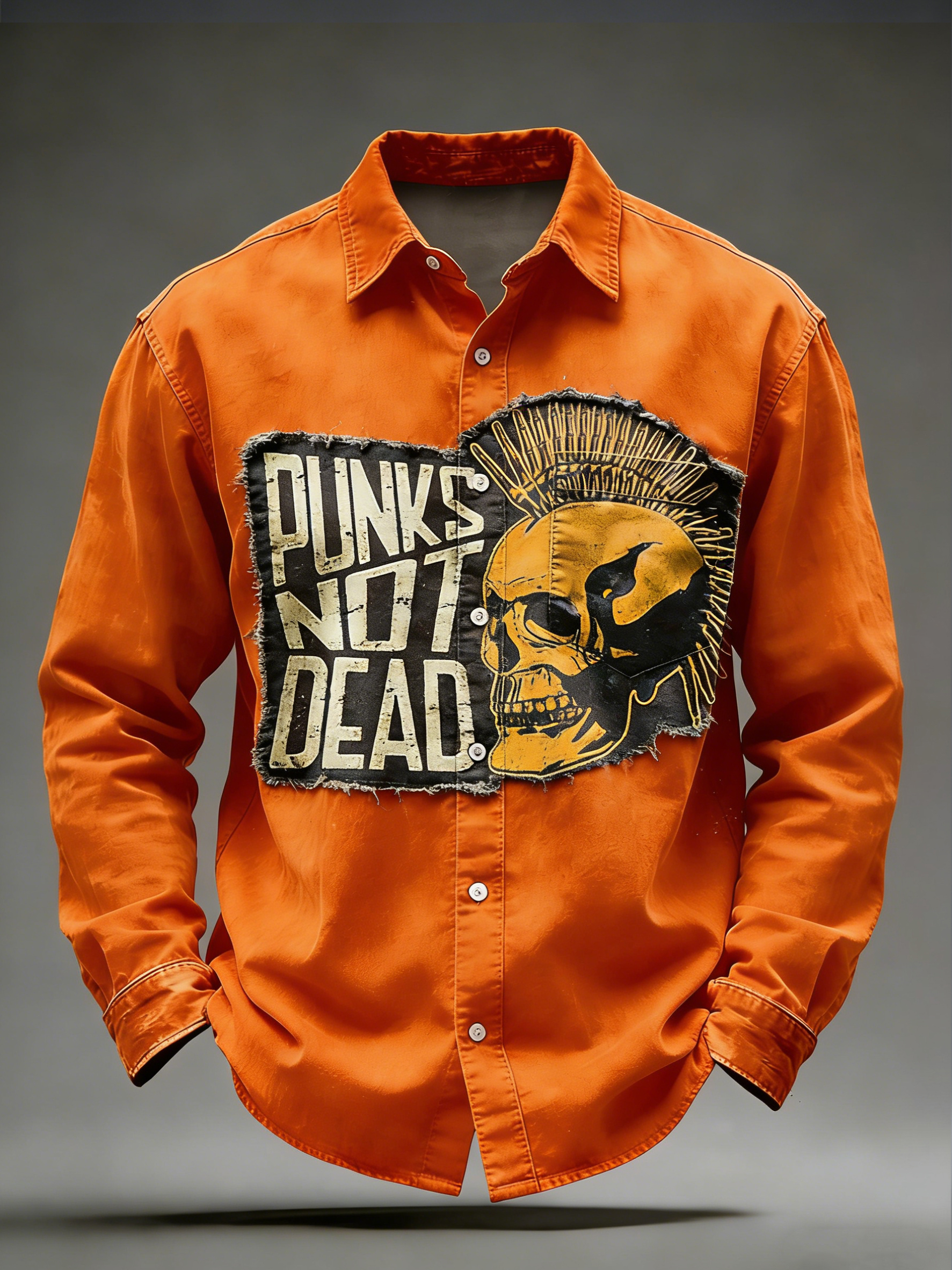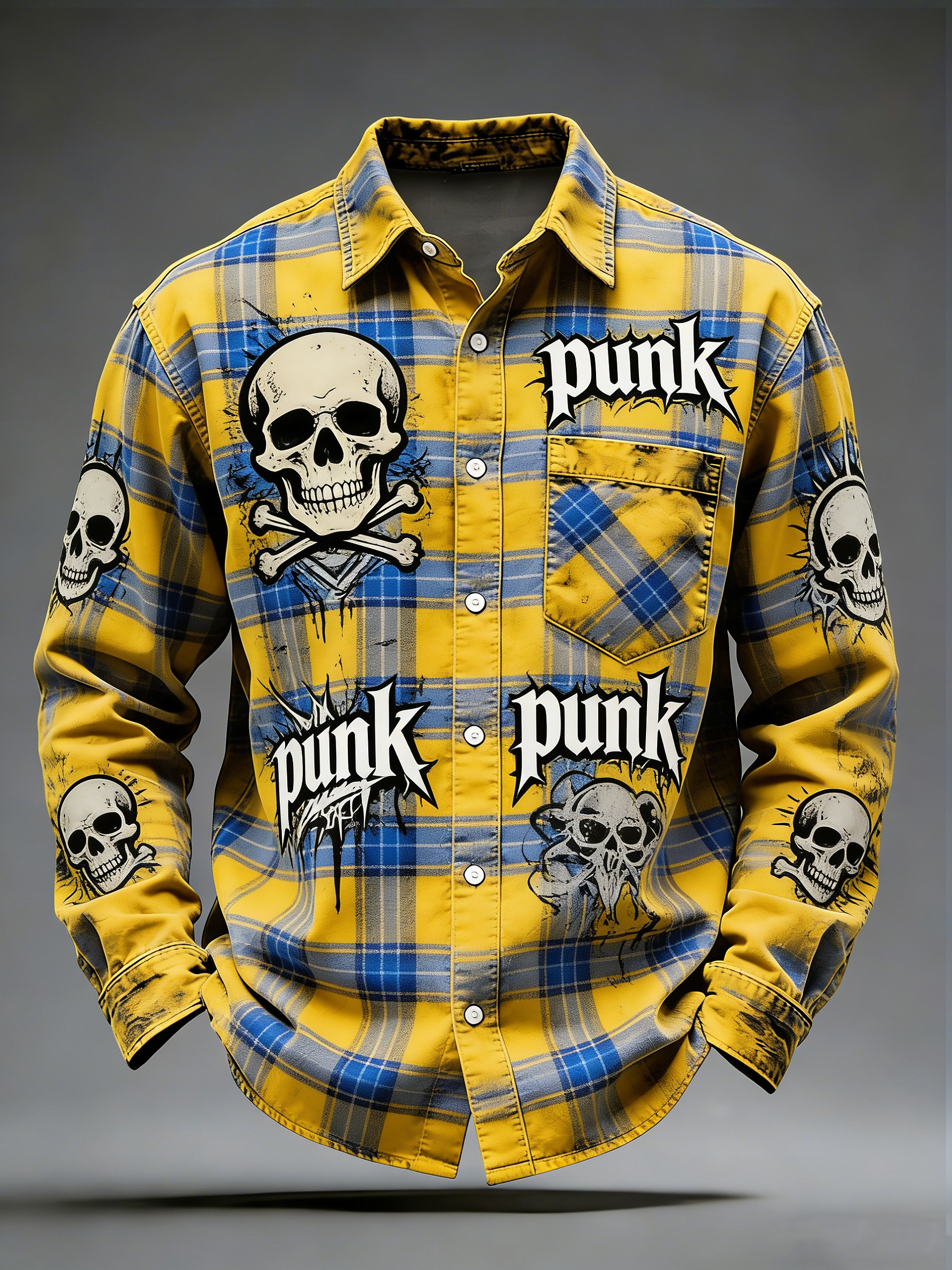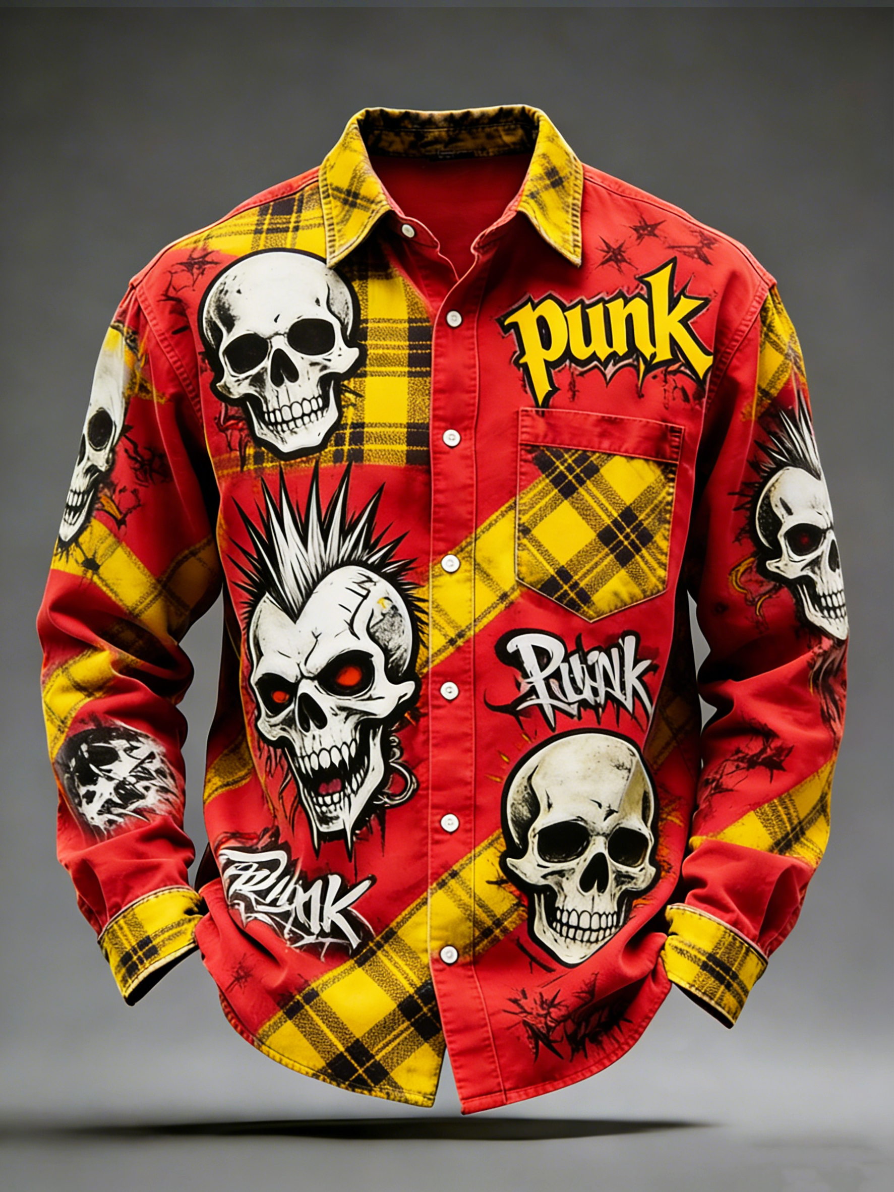 Men's Retro Punk Music Skull Printed Long Sleeved Pocket Shirt