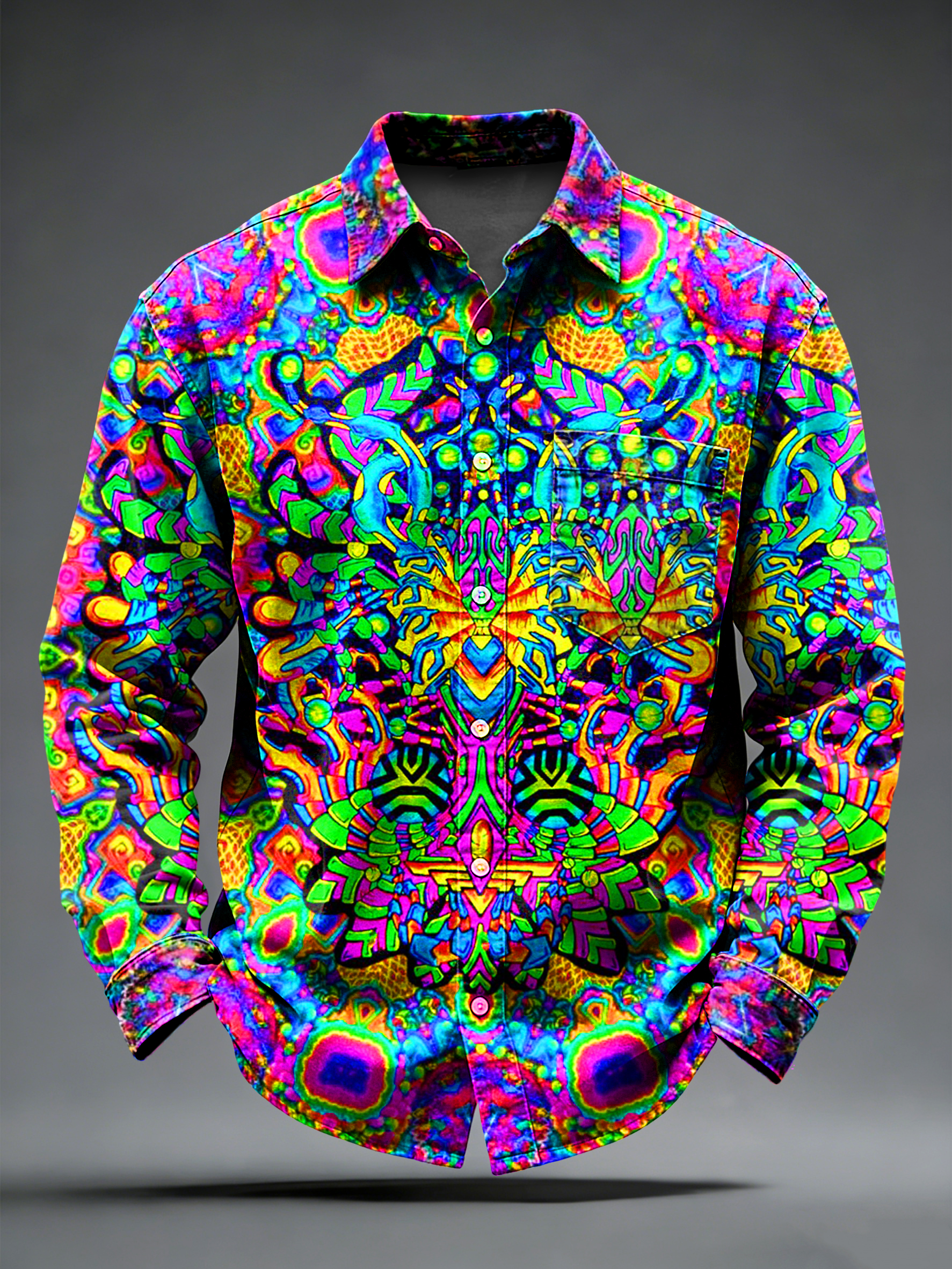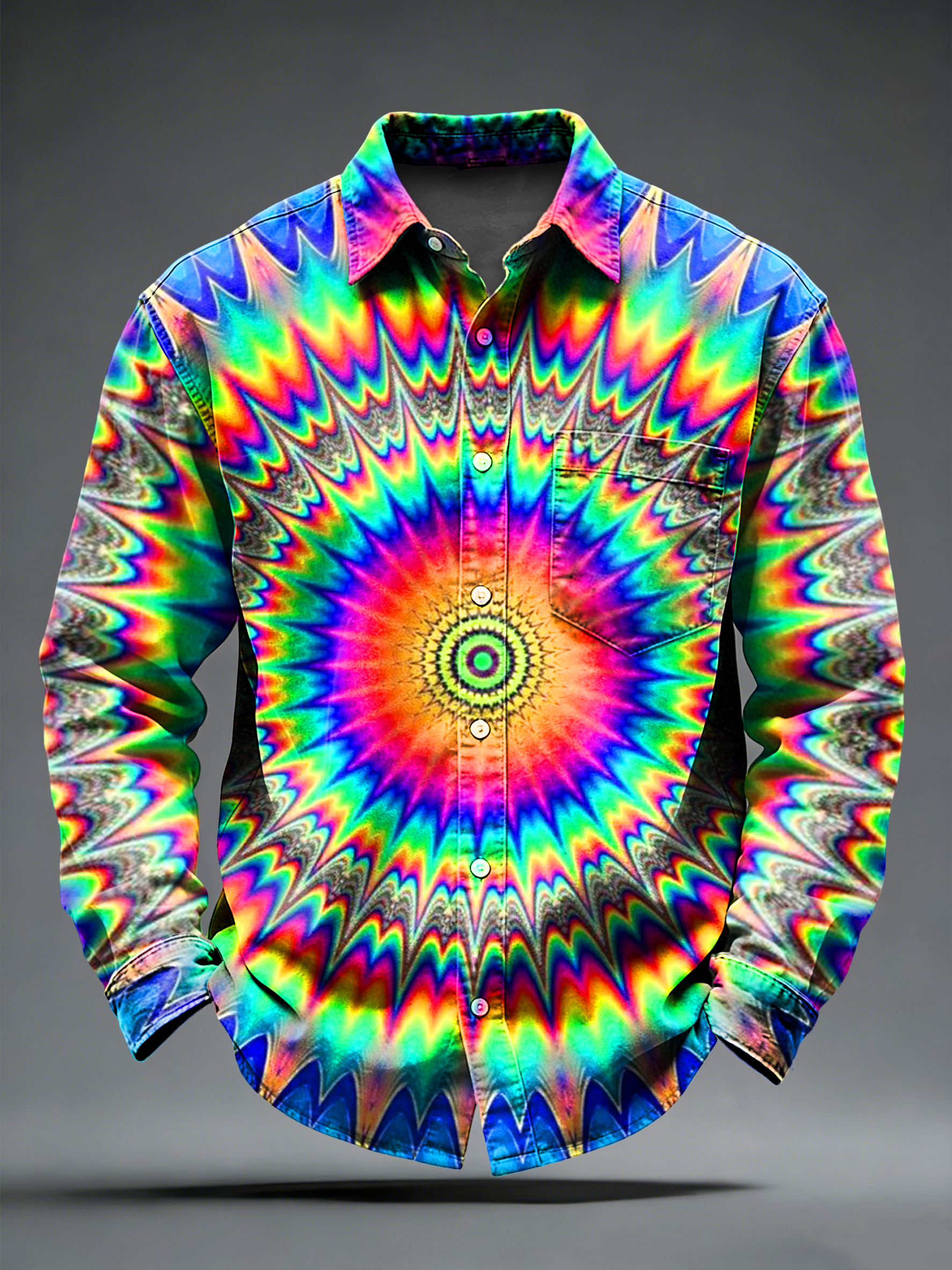 Men's Retro Psychedelic Printed Long Sleeved Pocket Shirt
