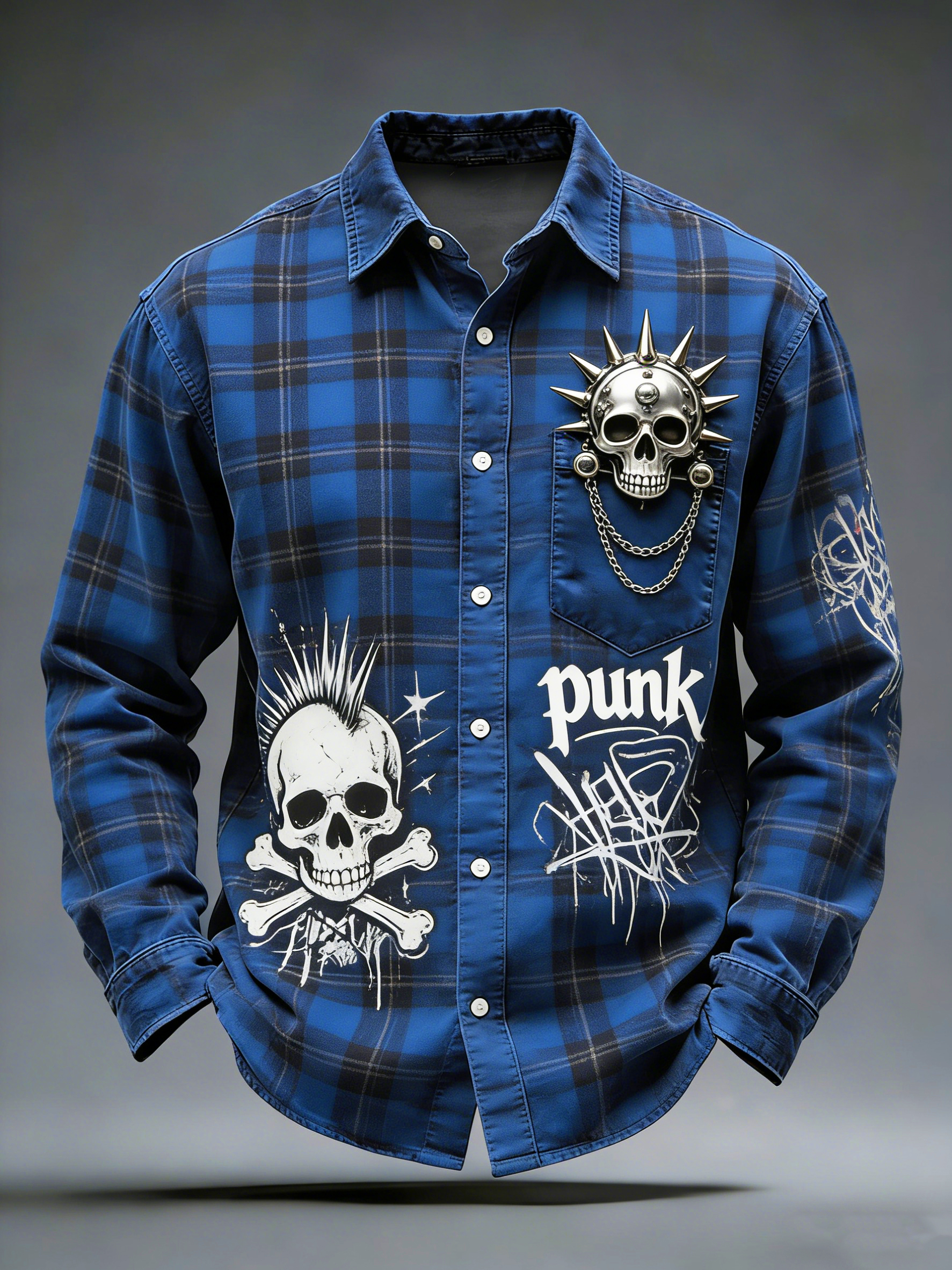 Men's Retro Punk Printed Long Sleeved Pocket Shirt