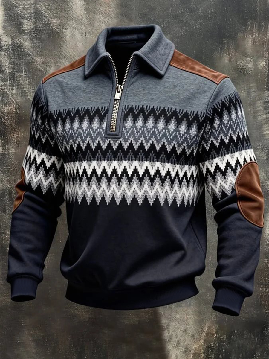 Men's Retro Casual Printed Zipper Sweatshirt