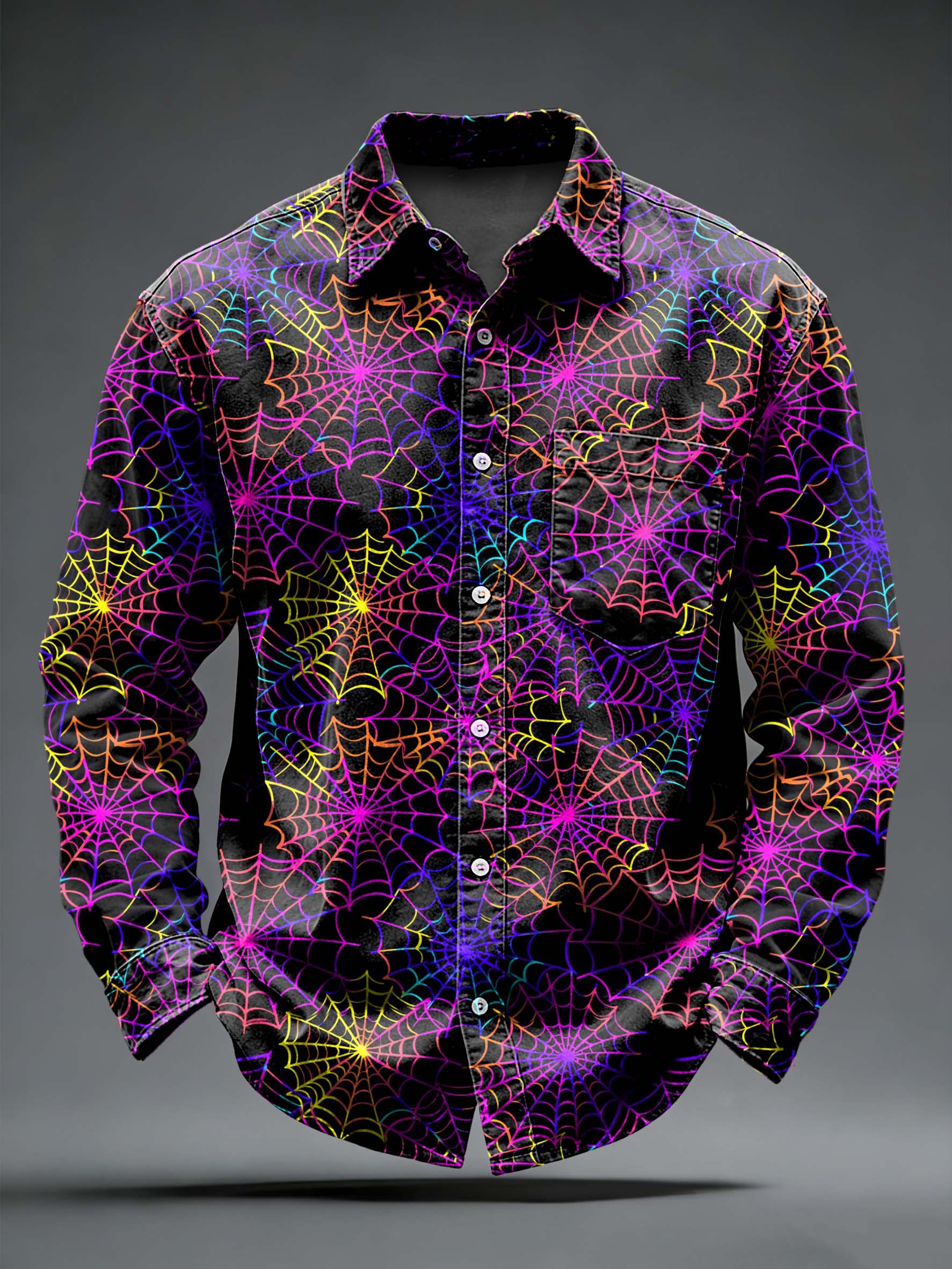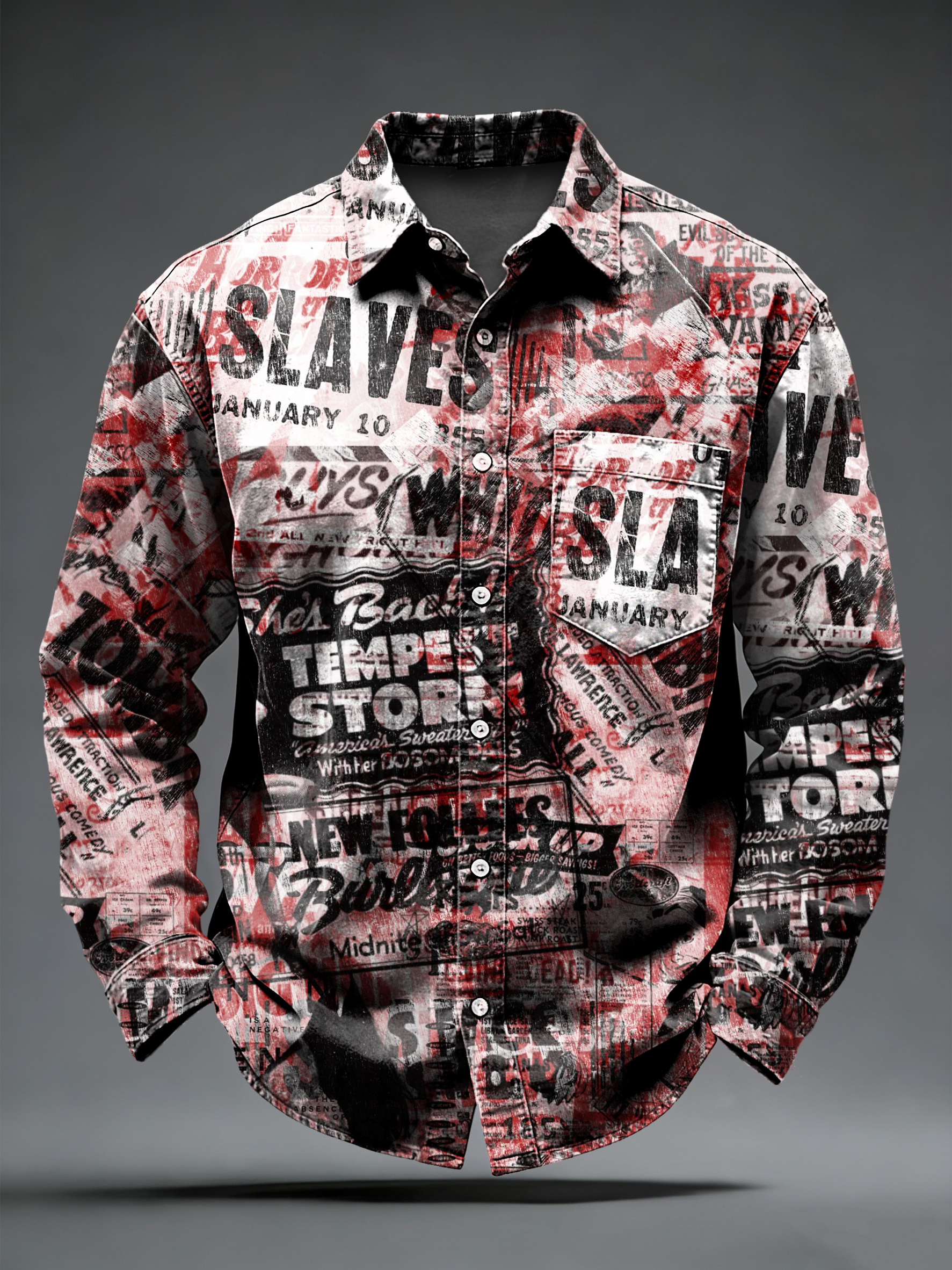 Men's Retro Punk Printed Long Sleeved Pocket Shirt