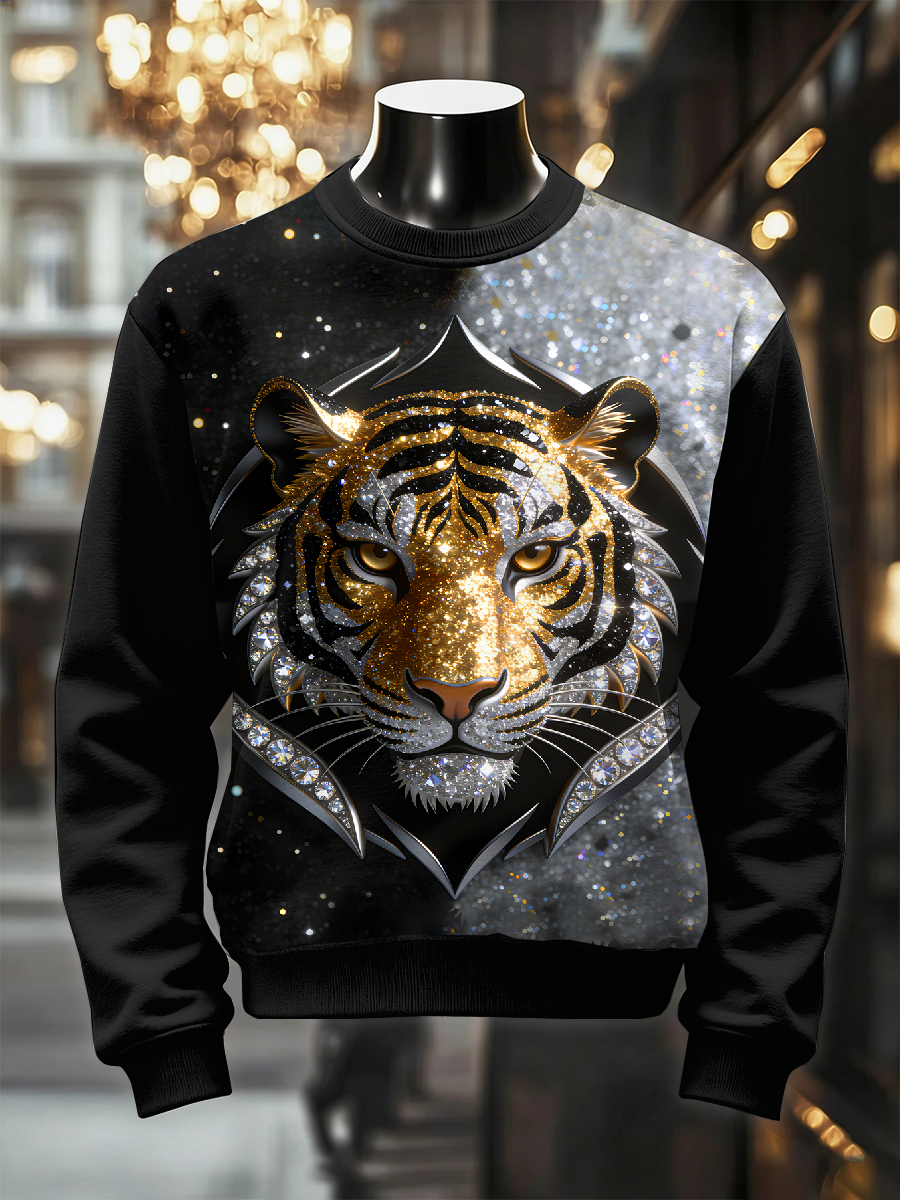 Men's Retro Luxurious Tiger Print Casual Sweatshirt