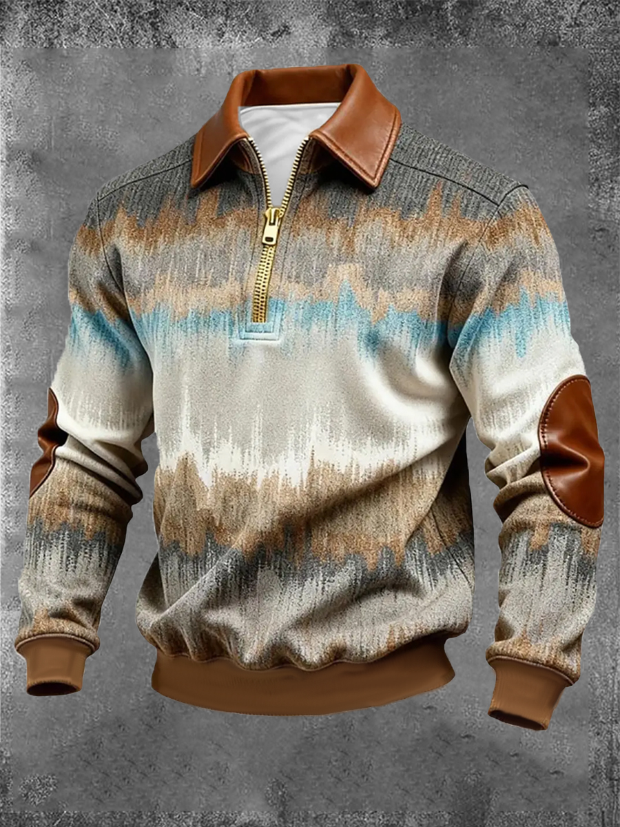 Men's Retro Color Block Print Zip-Up Sweatshirt