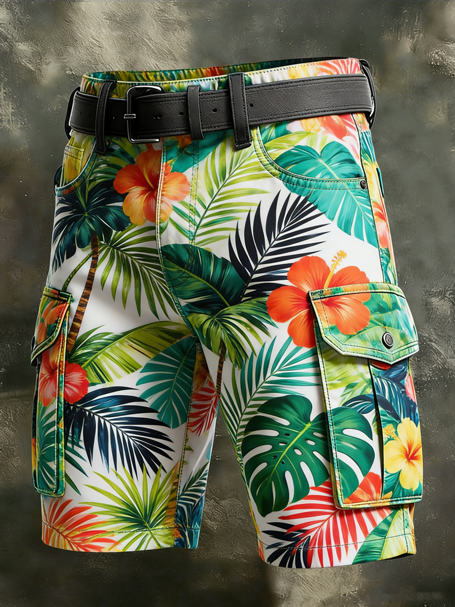 Men's Retro Vacation Business Art Print Casual Shorts