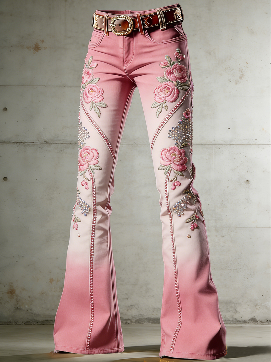 Women's Western Flowers Art Print Flared Trousers