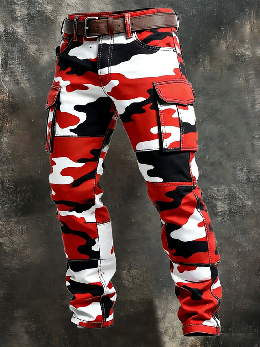 Men's Retro Vacation Business Art Print Casual Workwear Trousers