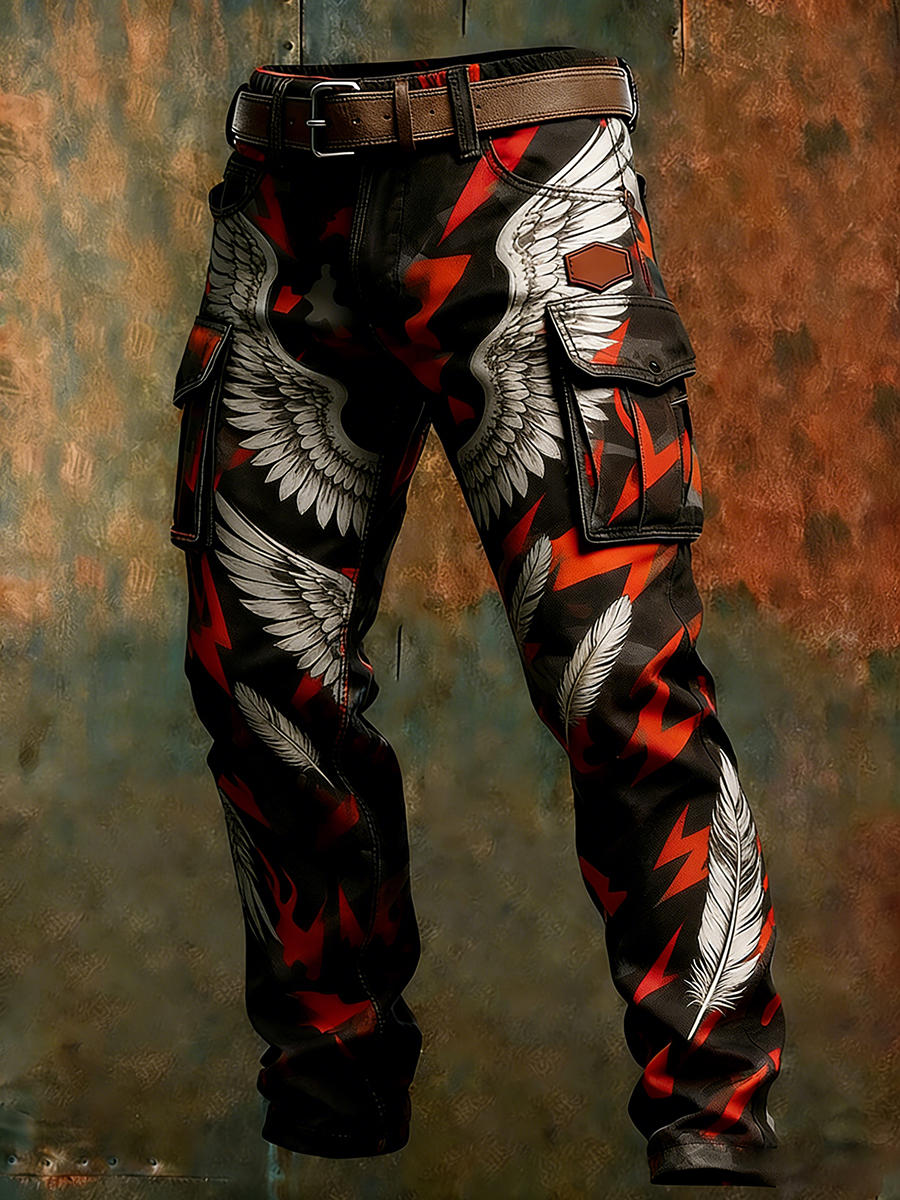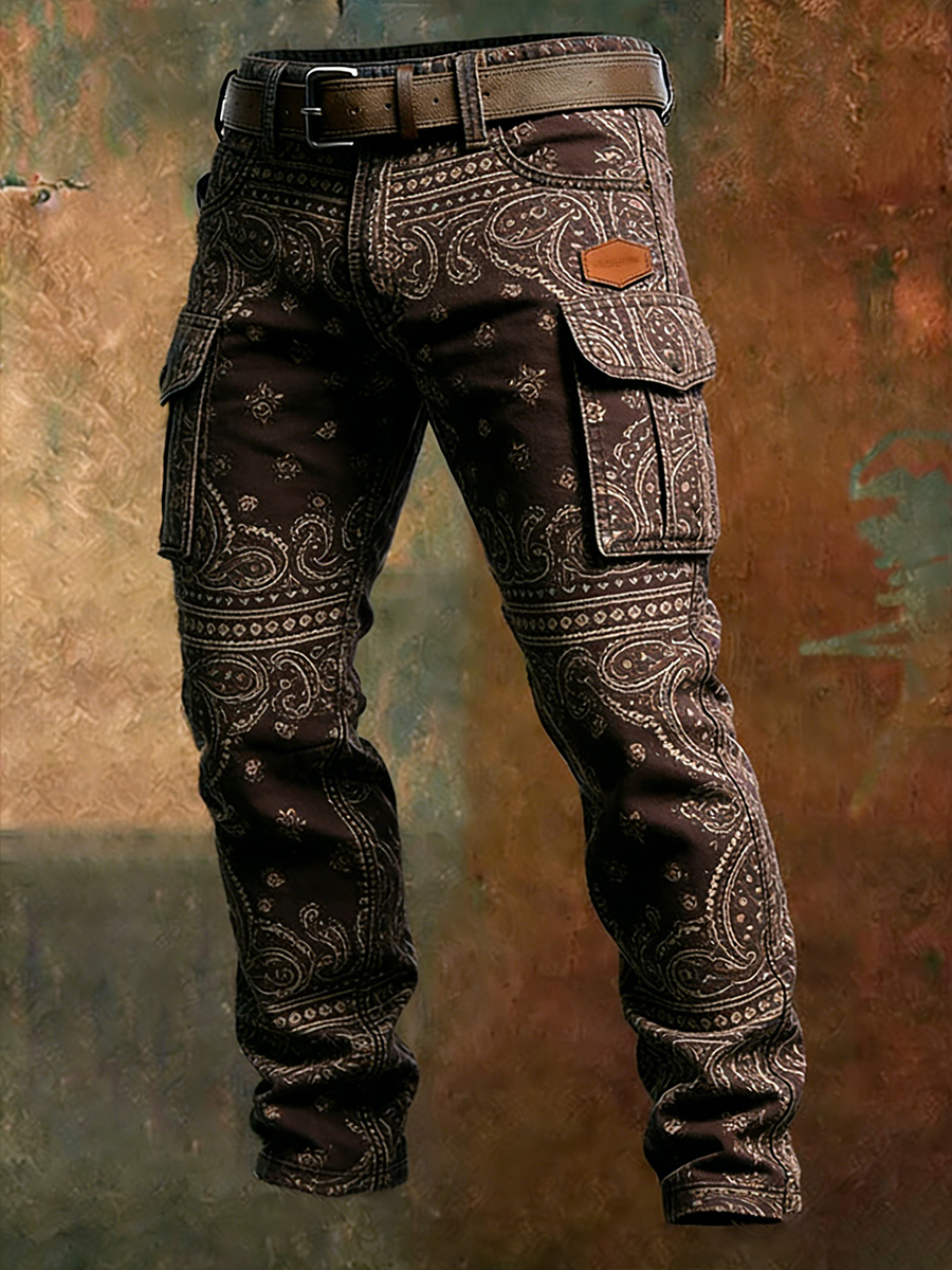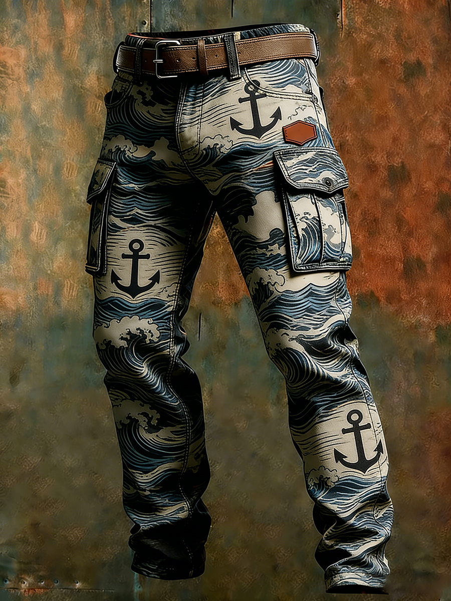 Men's Retro Vacation Business Art Print Casual Workwear Trousers