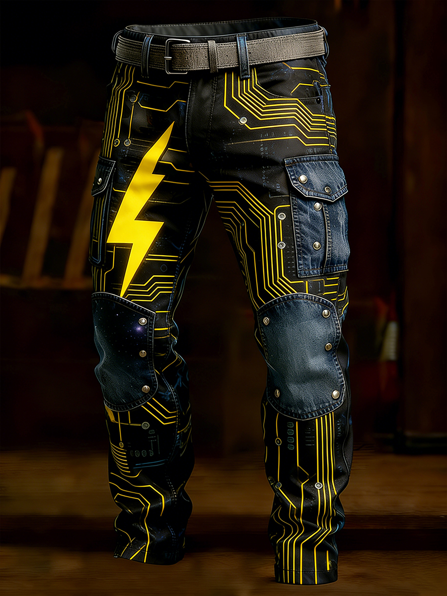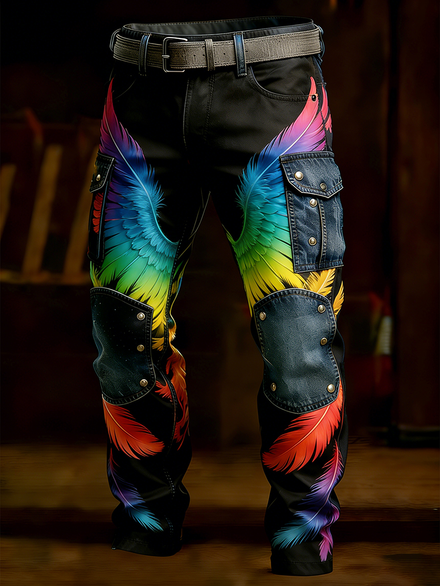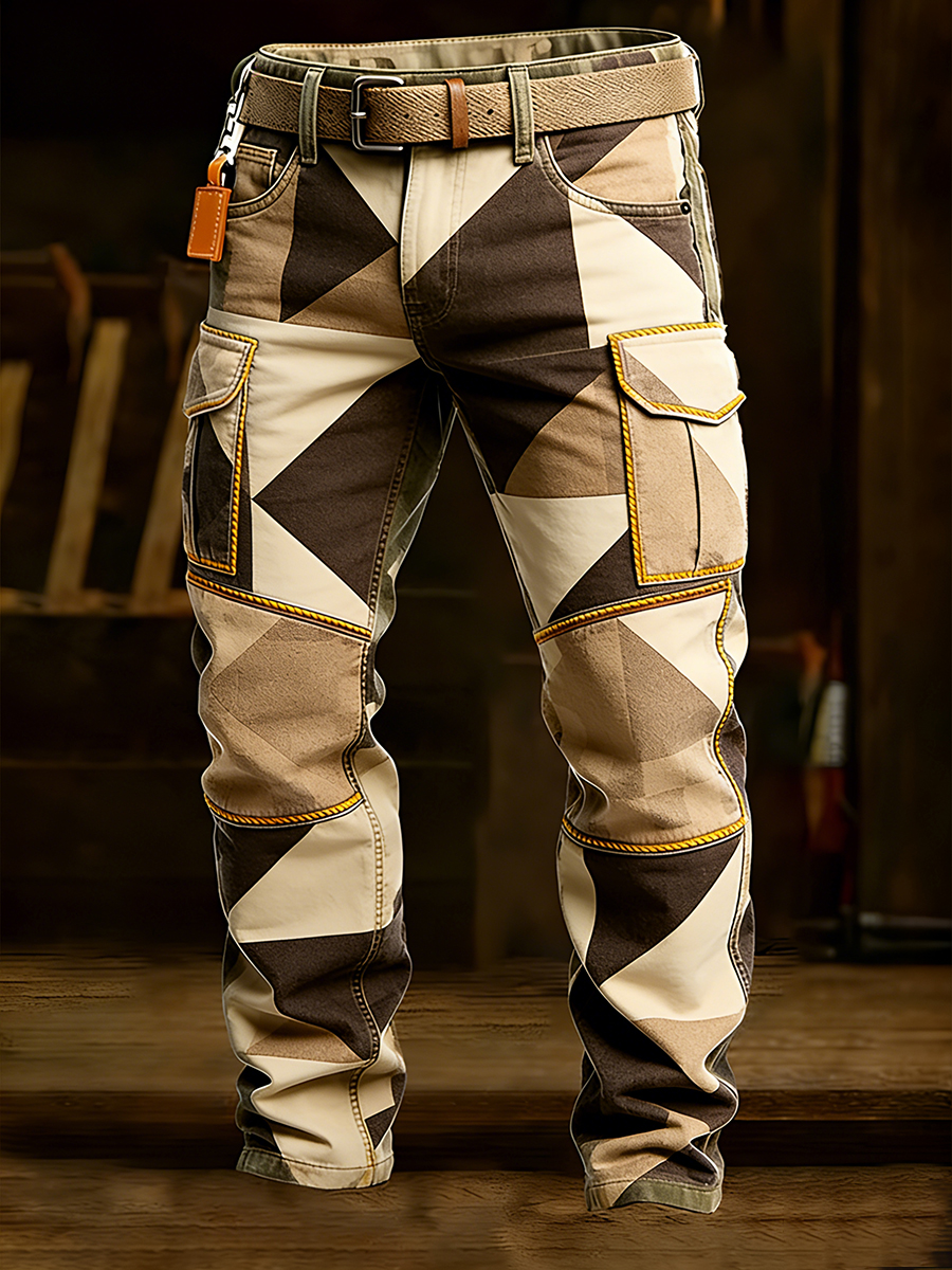 Men's Retro Vacation Business Art Print Casual Workwear Trousers