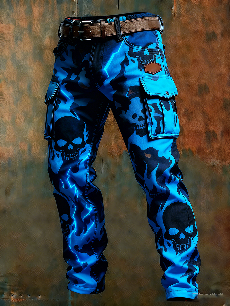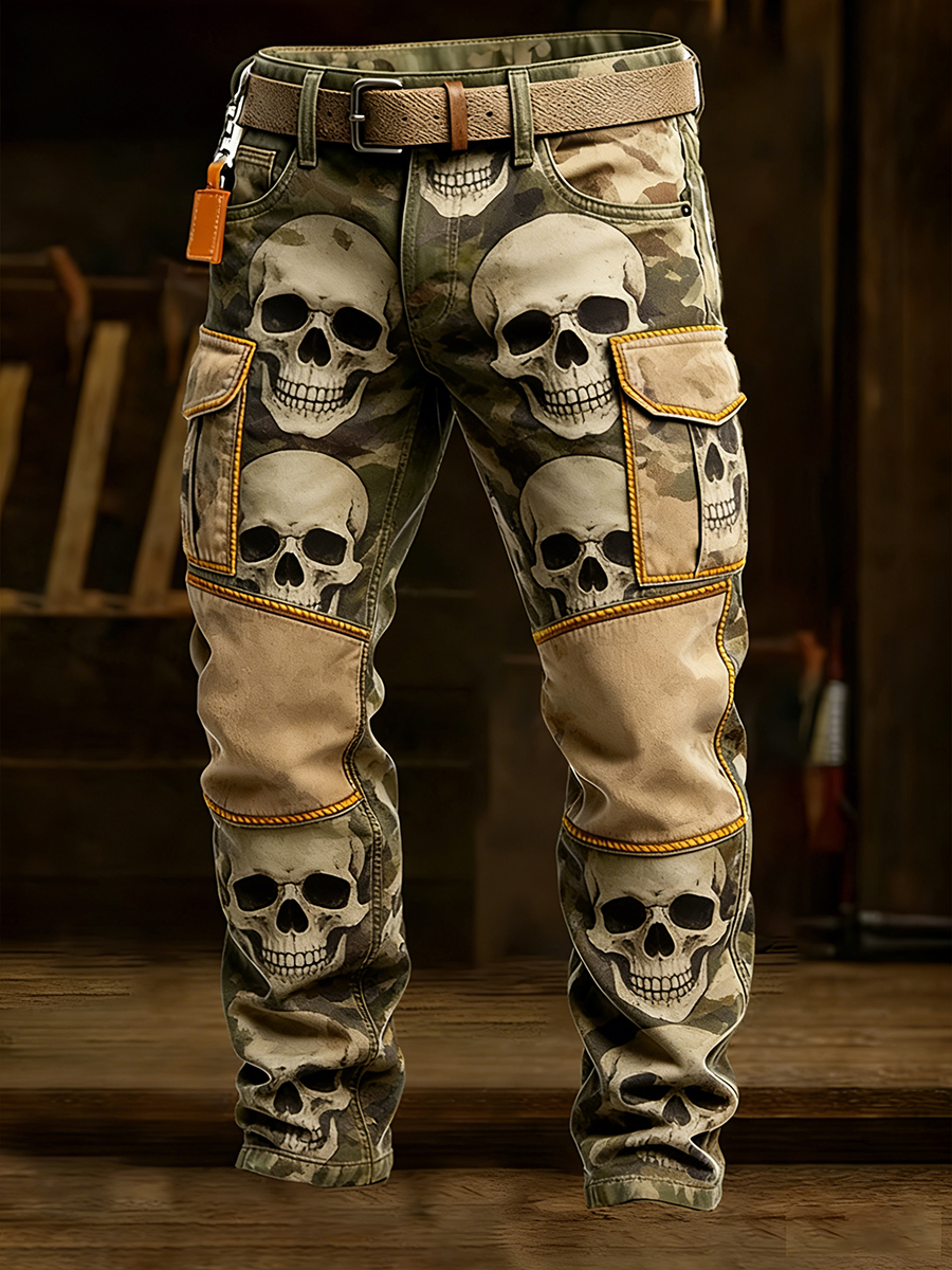 Men's Retro Vacation Business Punk Skull Art Print Casual Workwear Trousers